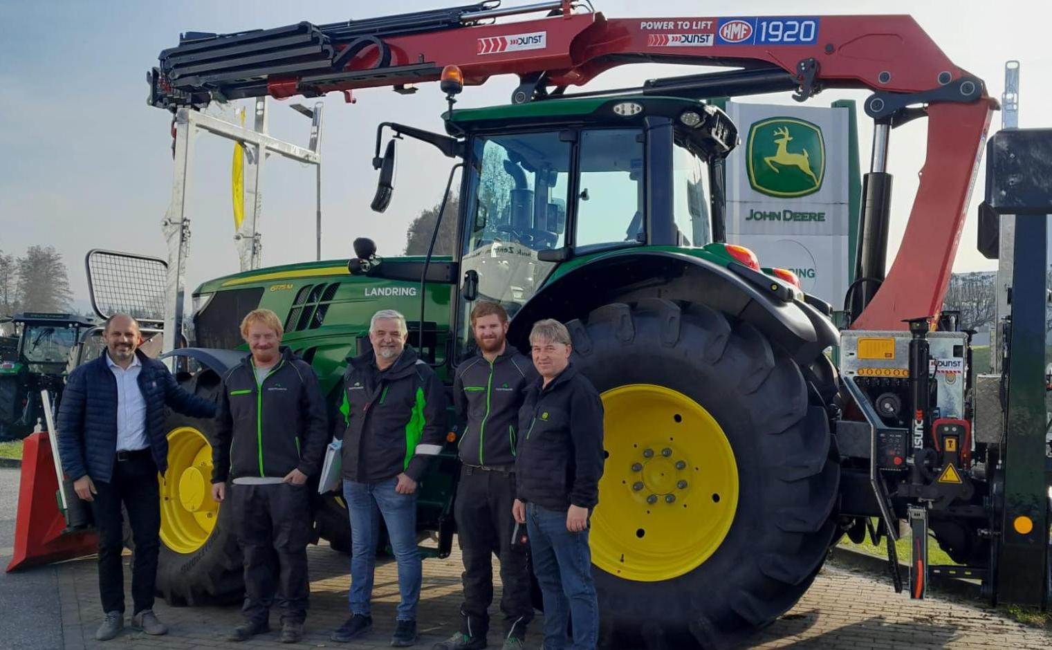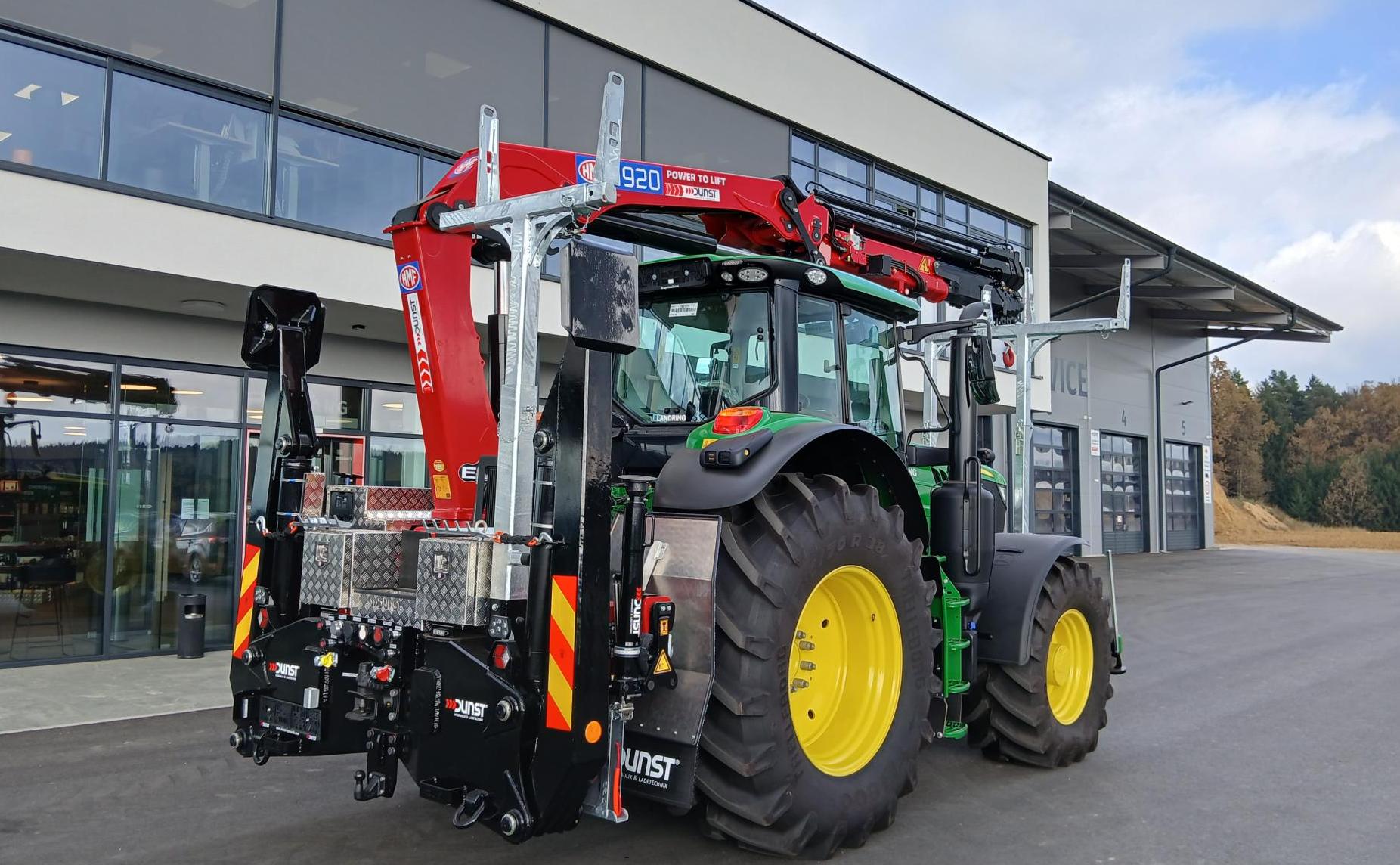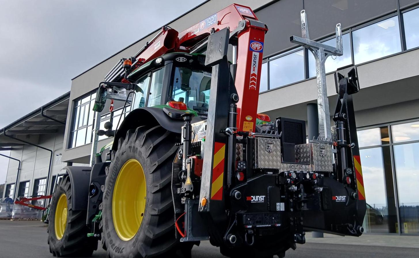Montage eines HMF 1920-K4 Ladekranes + Kranmontage Heck fix auf John Deere