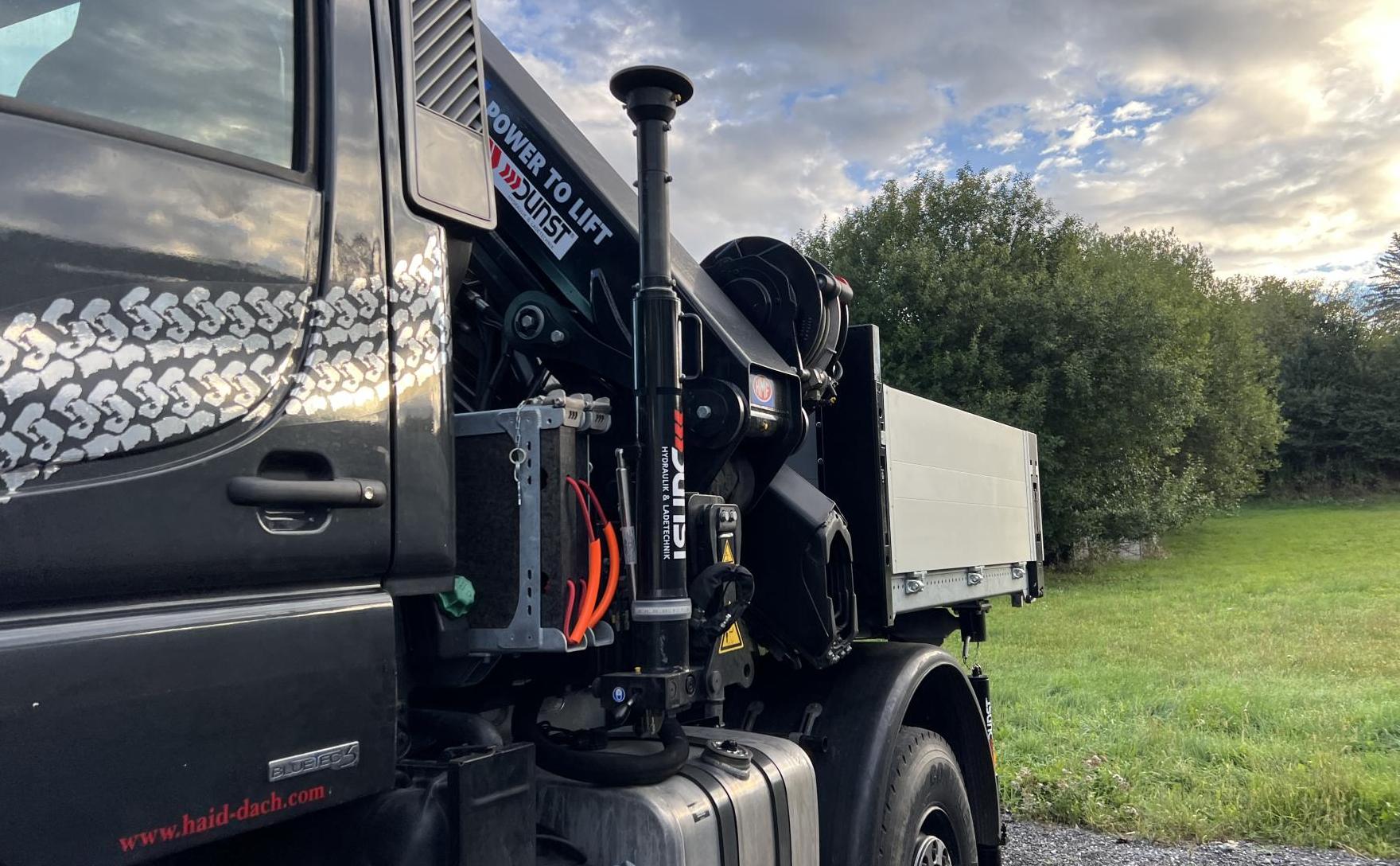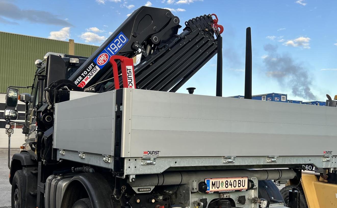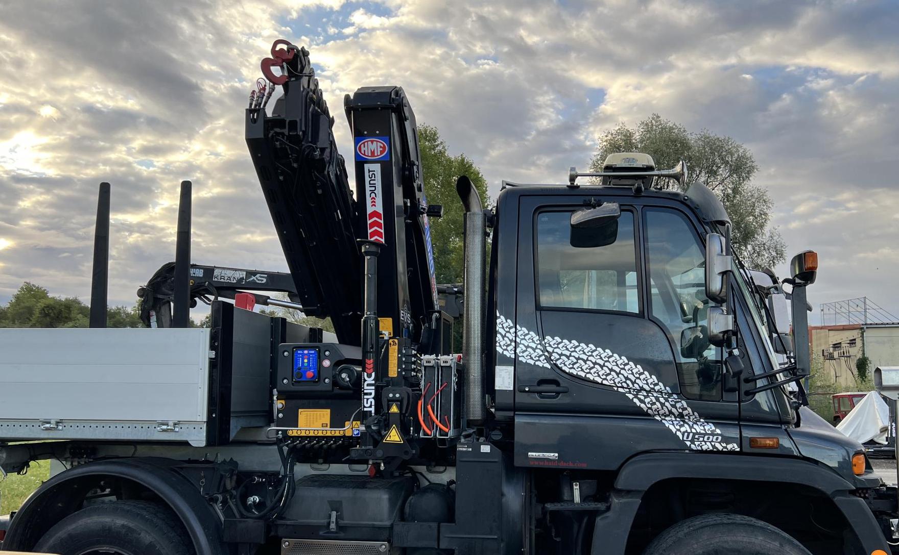Montage eines HMF 1920-K6 Ladekranes front auf bestehenden Unimog