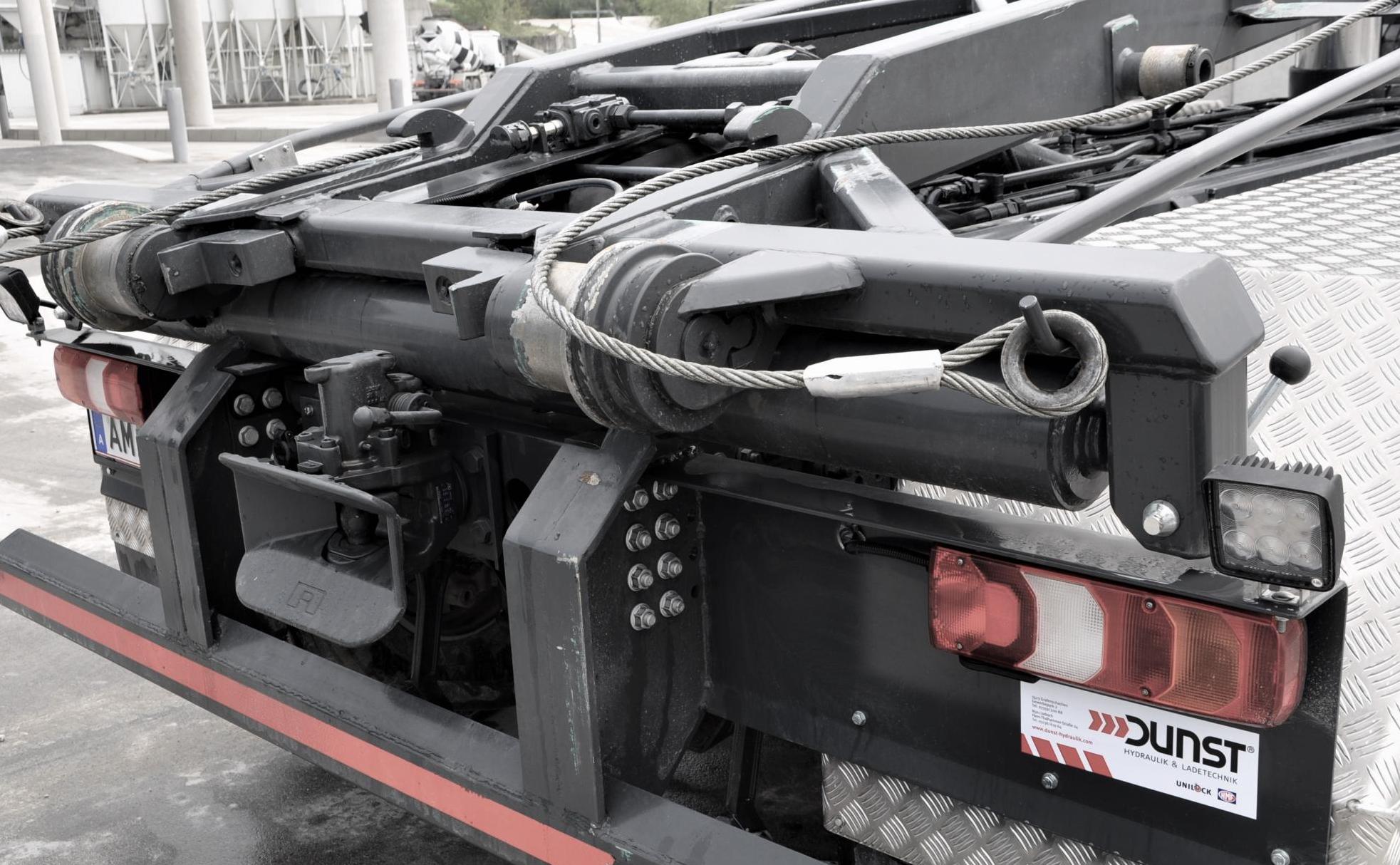 - Hydraulischer Stopp hinten, flexibel für unterschiedliche Behälterlängen