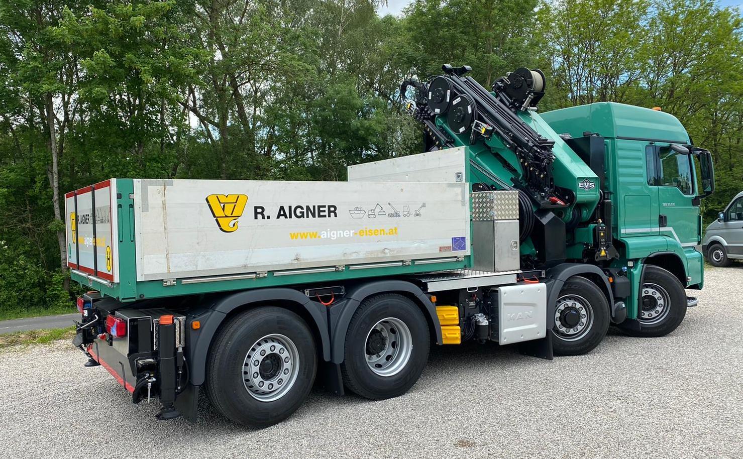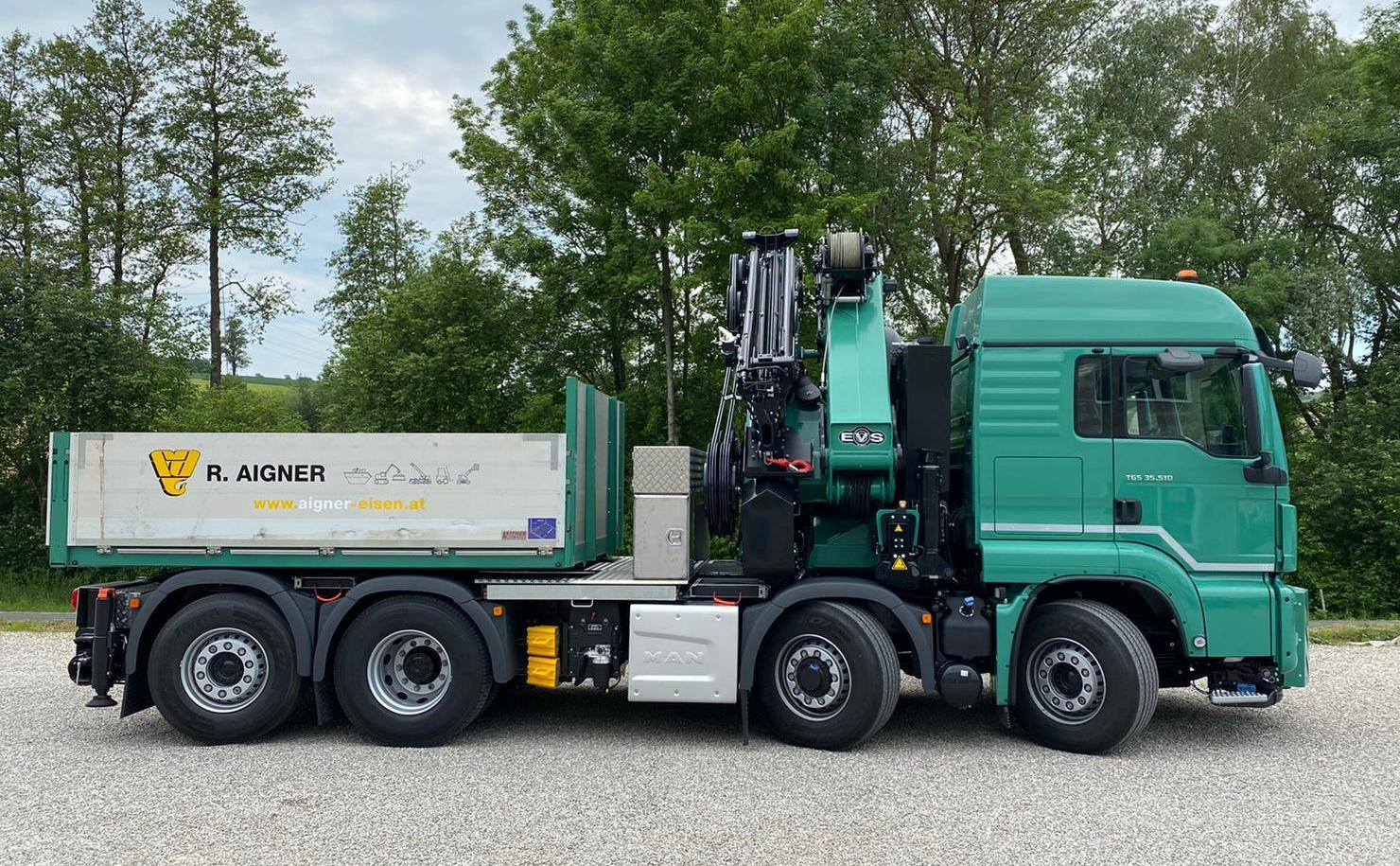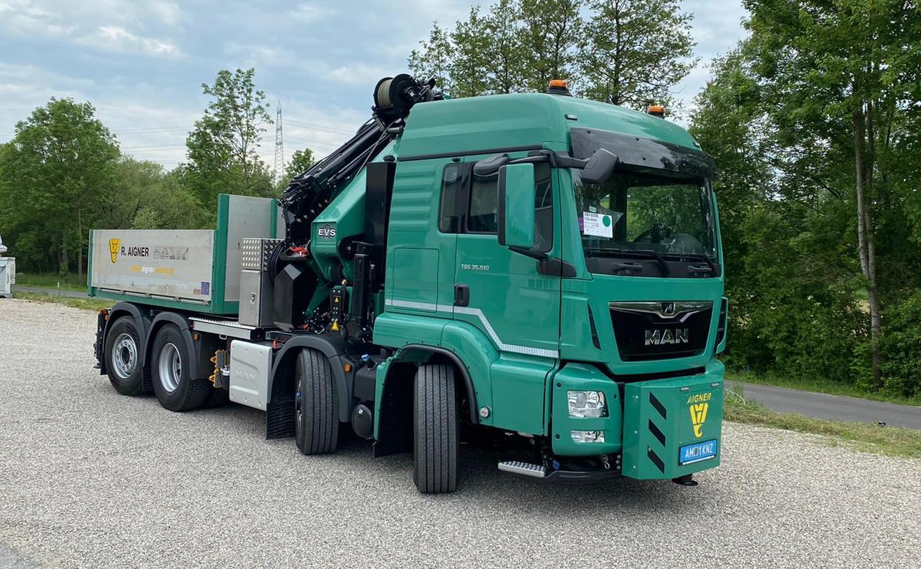 Montage eines HMF 7020-K7 + FJ1400-K6 Ladekranes front