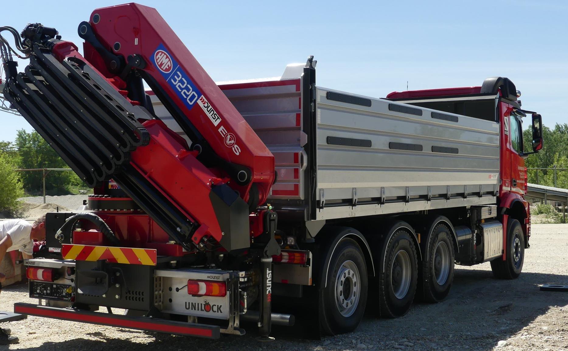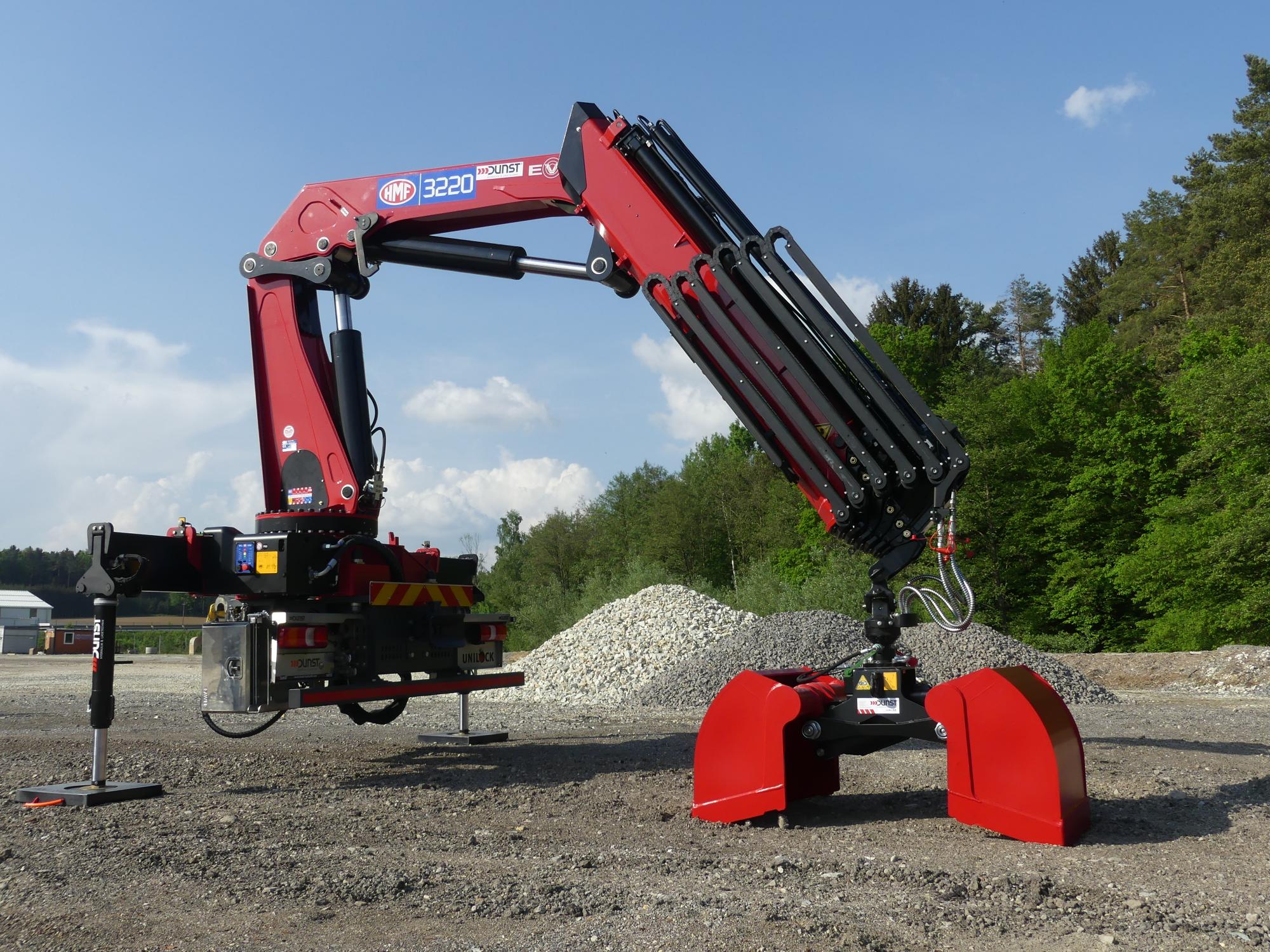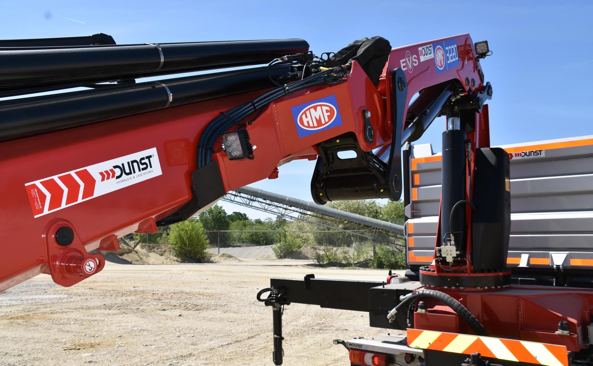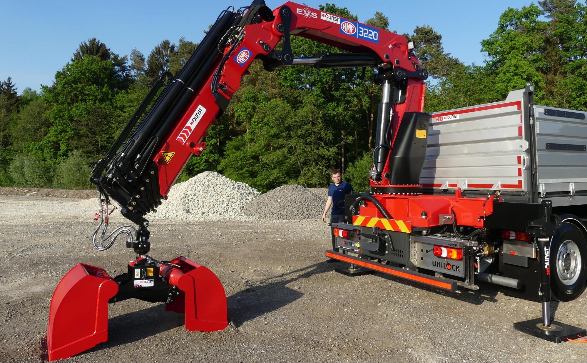 Montage eines HMF 3220-K6 Ladekranes Heck abnehmbar auf UNILOCK 350 Kran-Schnellwechselsystem