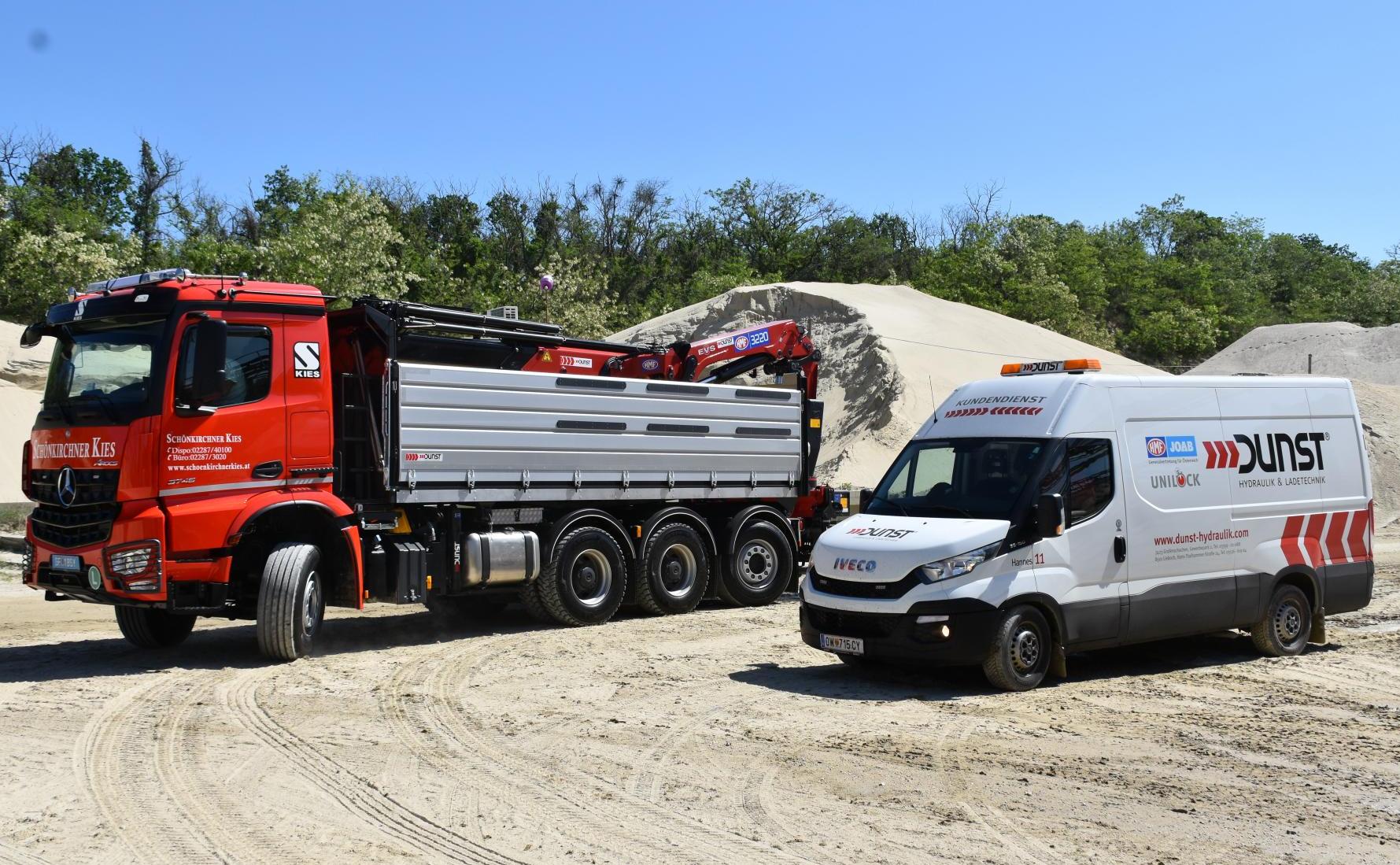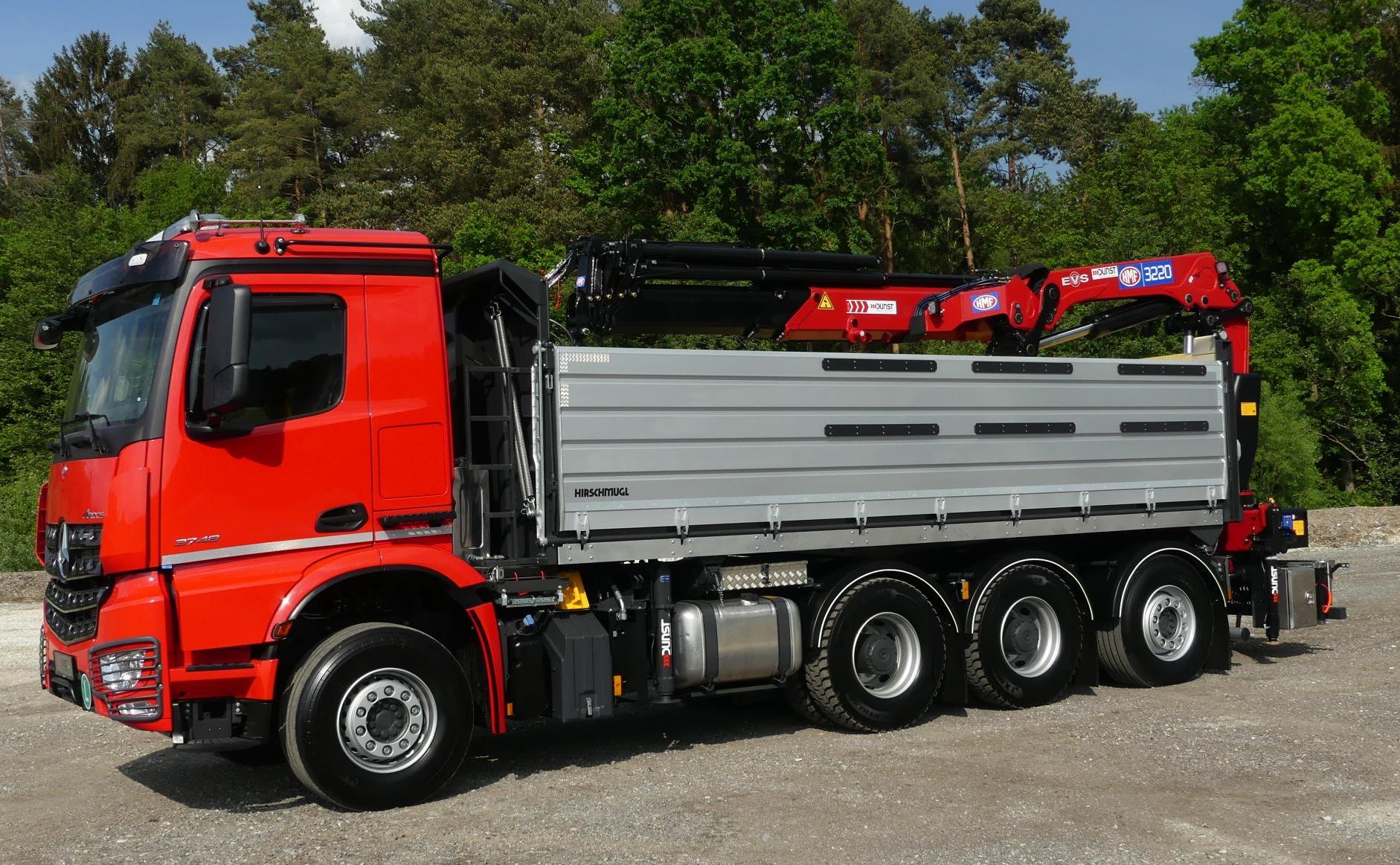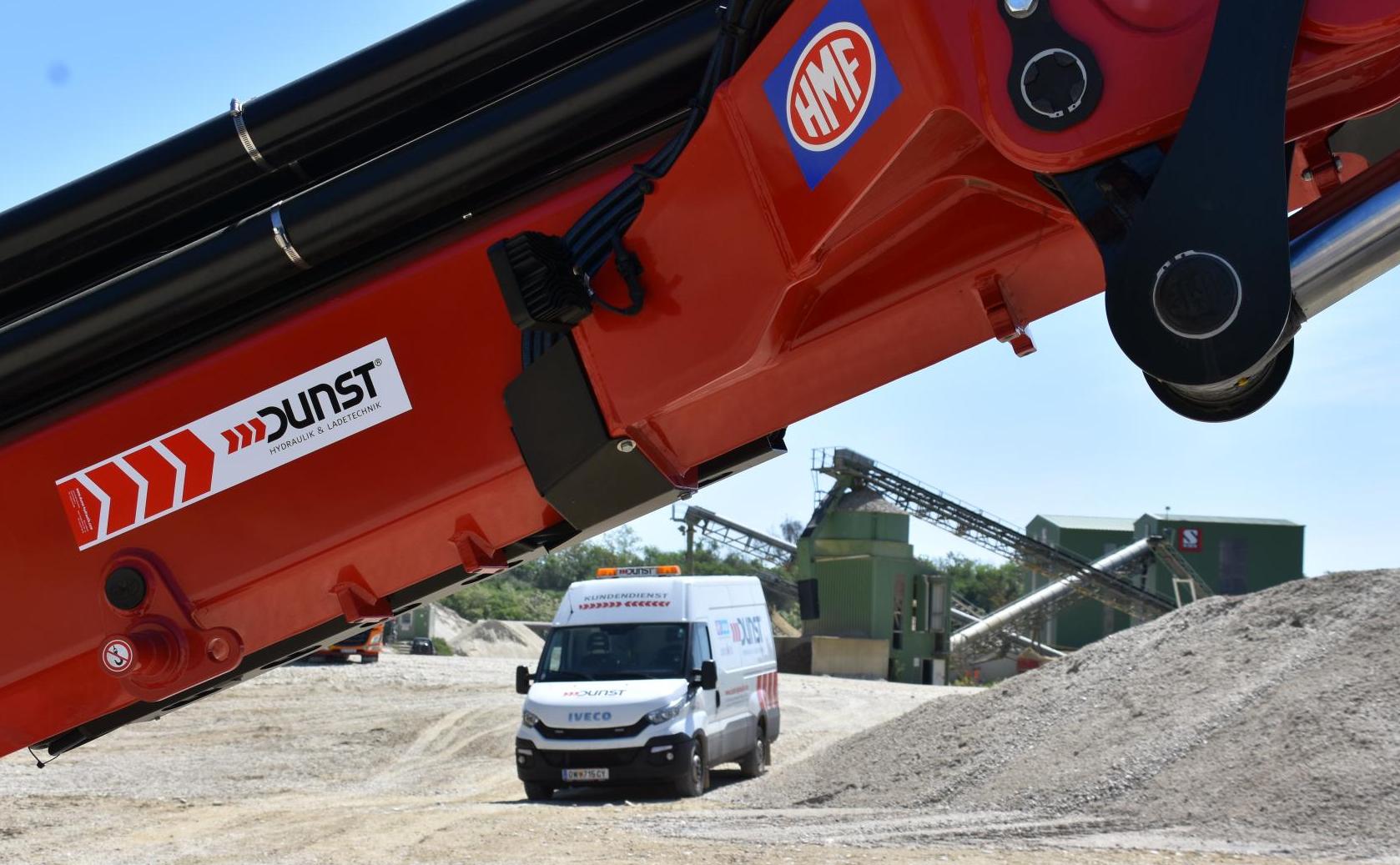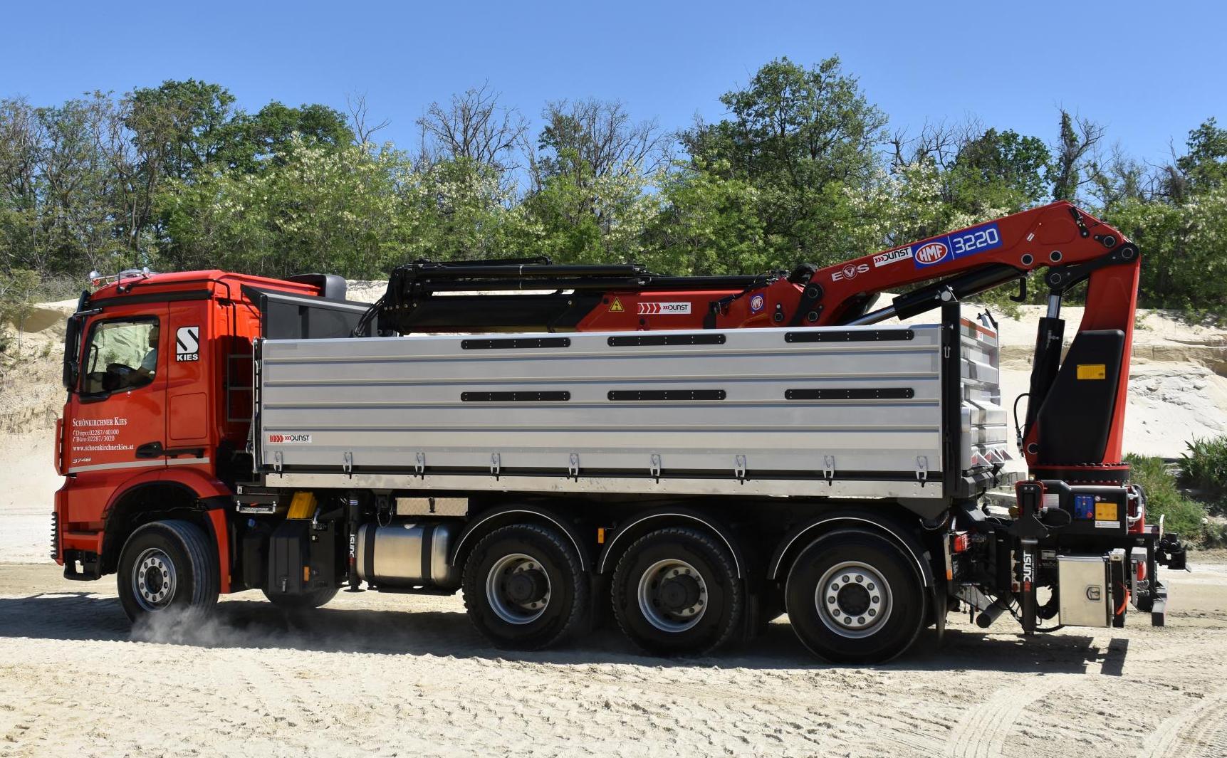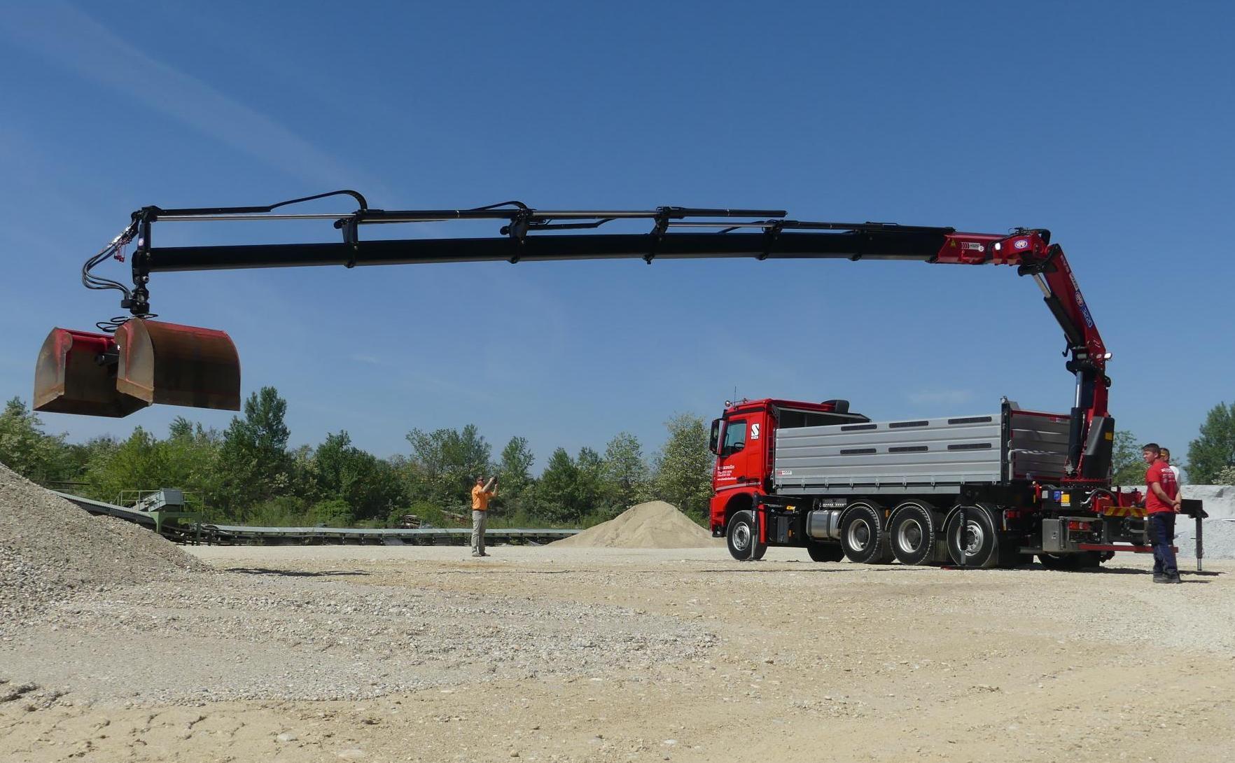 Montage eines HMF 3220-K6 Ladekranes Heck abnehmbar auf UNILOCK 350 Kran-Schnellwechselsystem