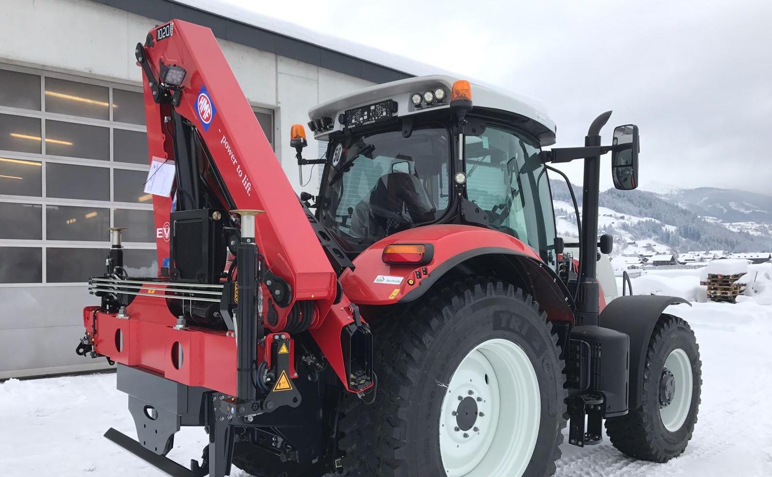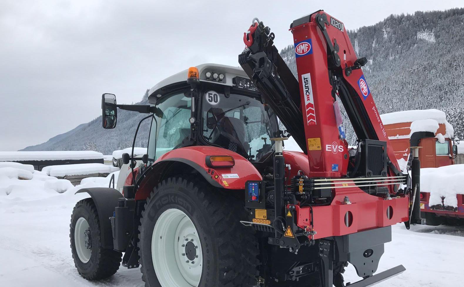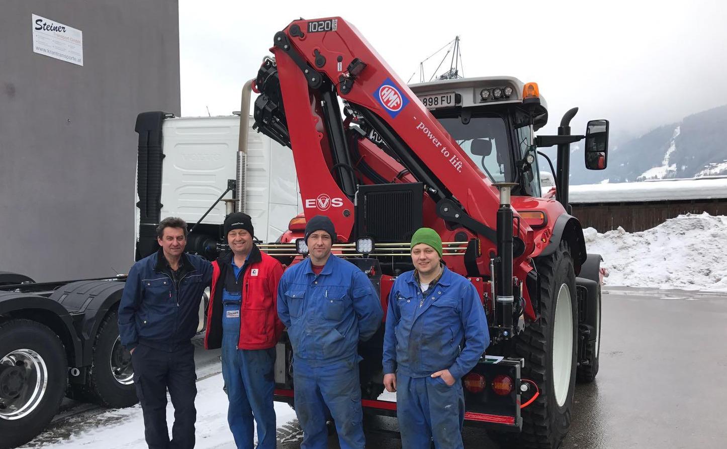 Montage eines HMF 1020-K3 Ladekranes auf hydraulisch abnehmbarer Heckkonsole