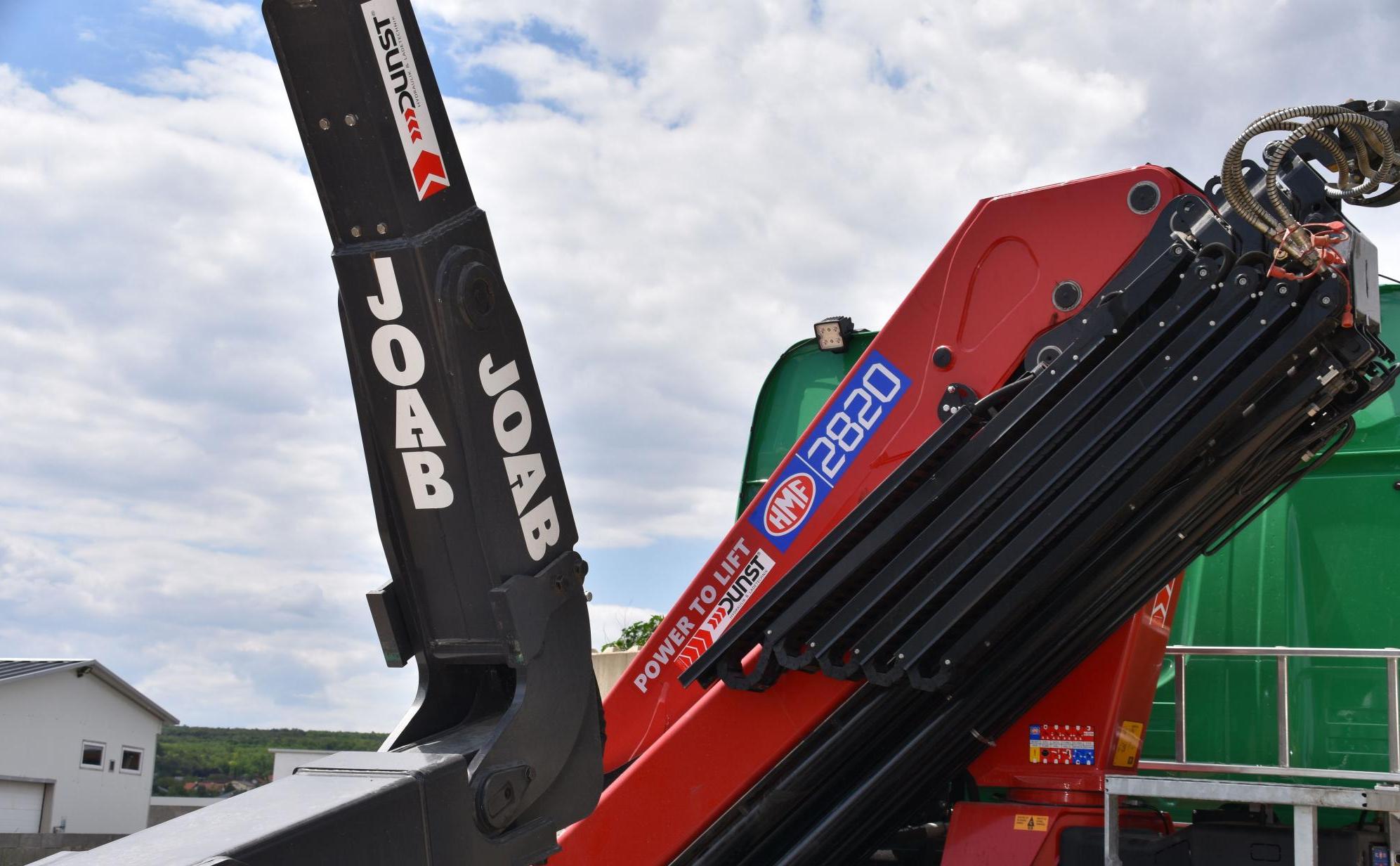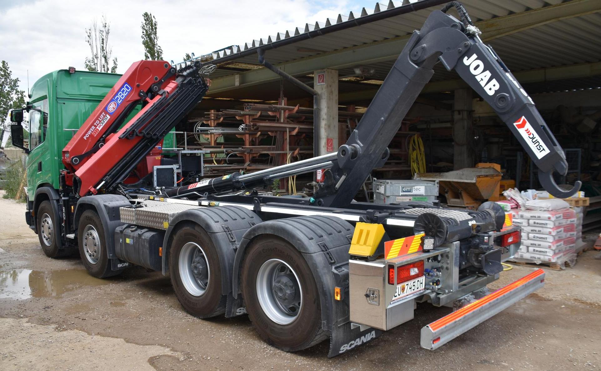 Montage eines HMF 2820-K5 Ladekranes und eines JOAB Abrollkippers L24A