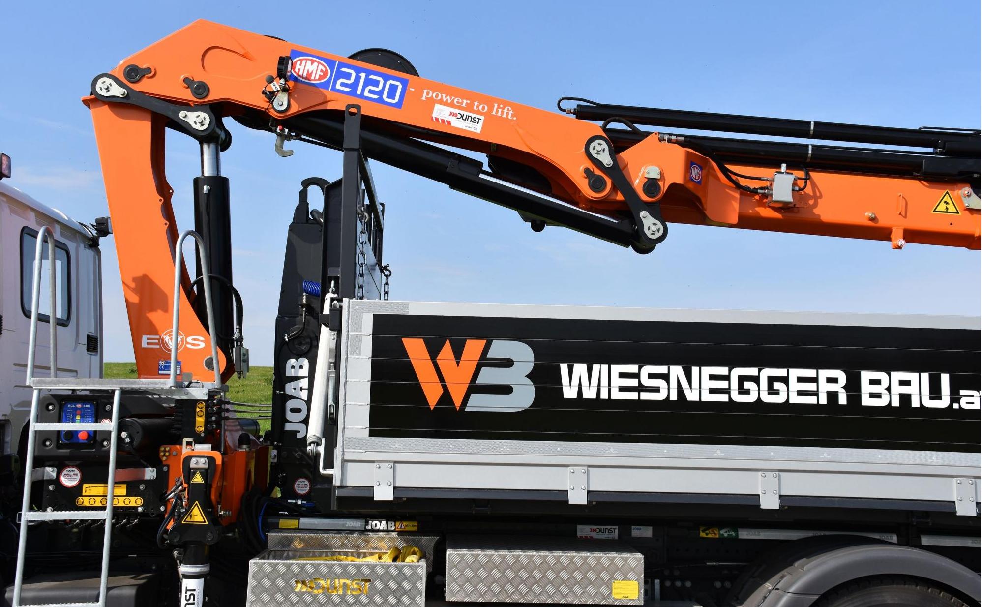 Montage eines JOAB Abrollkippers L20A und eines HMF 2120-K4 Ladekranes front