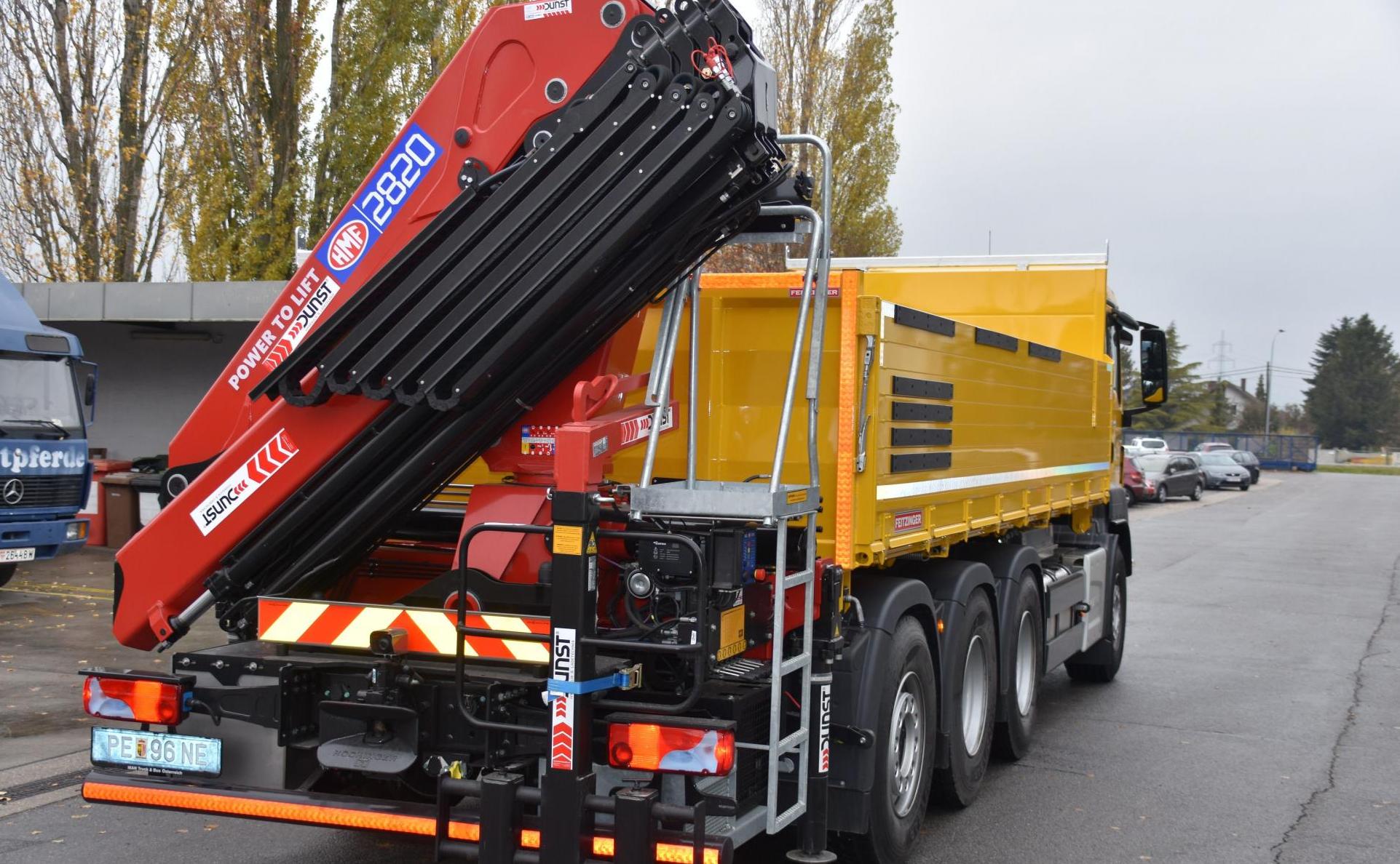 Montage eines HMF 2820-K5 + FJ700-K4 Ladekranes Heck fix