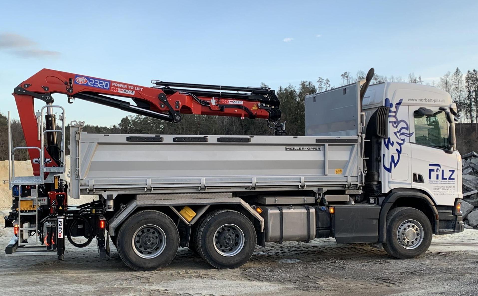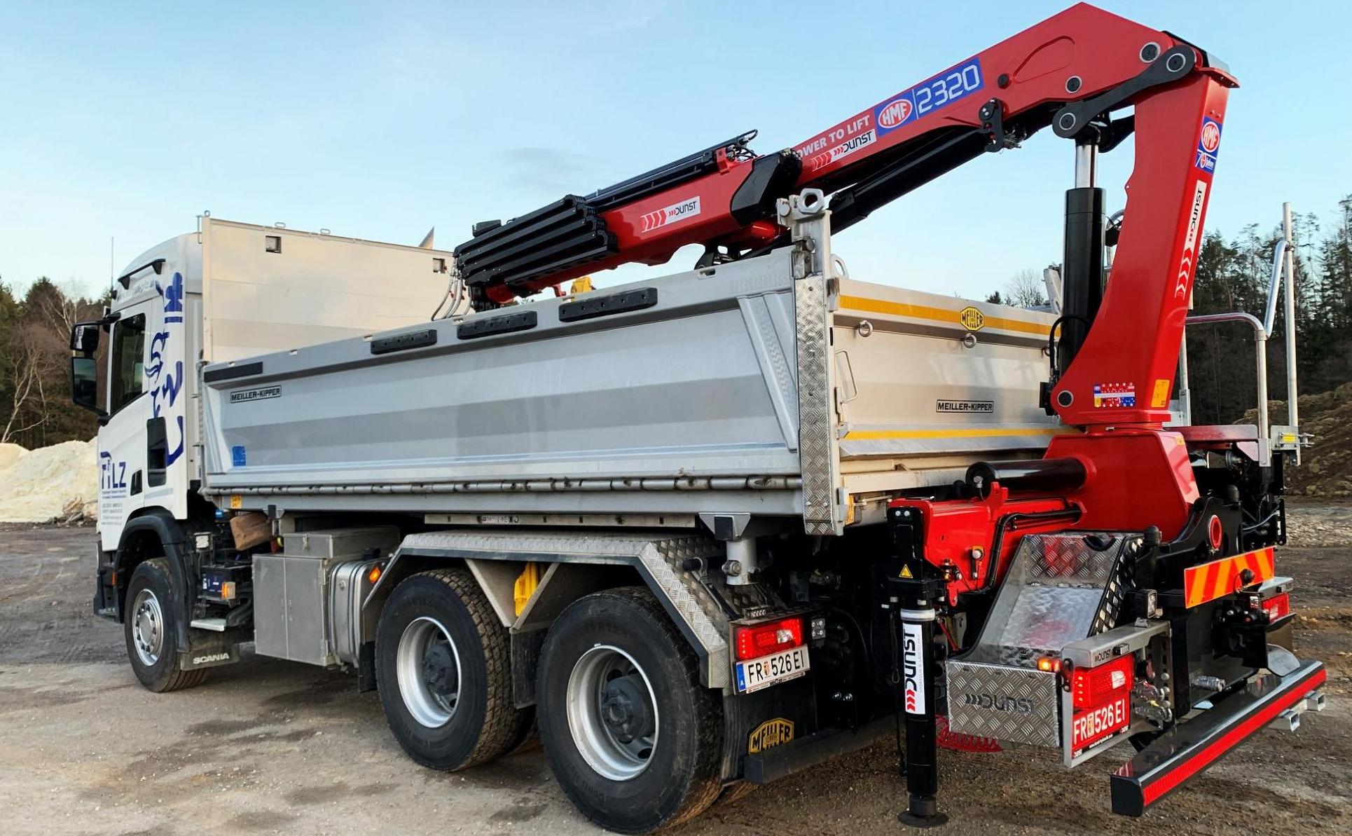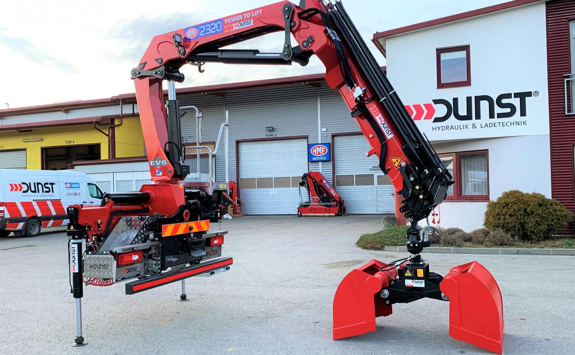 Montage eines HMF 2320-K4 Ladekranes heck abnehmbar auf UNILOCK Kran-Schnellwechselsystem