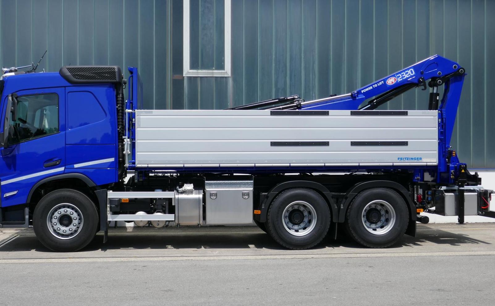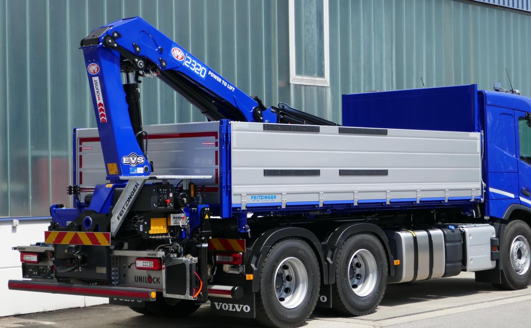 Montage eines HMF 2320-K5 Ladekranes heck abnehmbar auf Unilock 250 Kran-Schnellwechselsystem