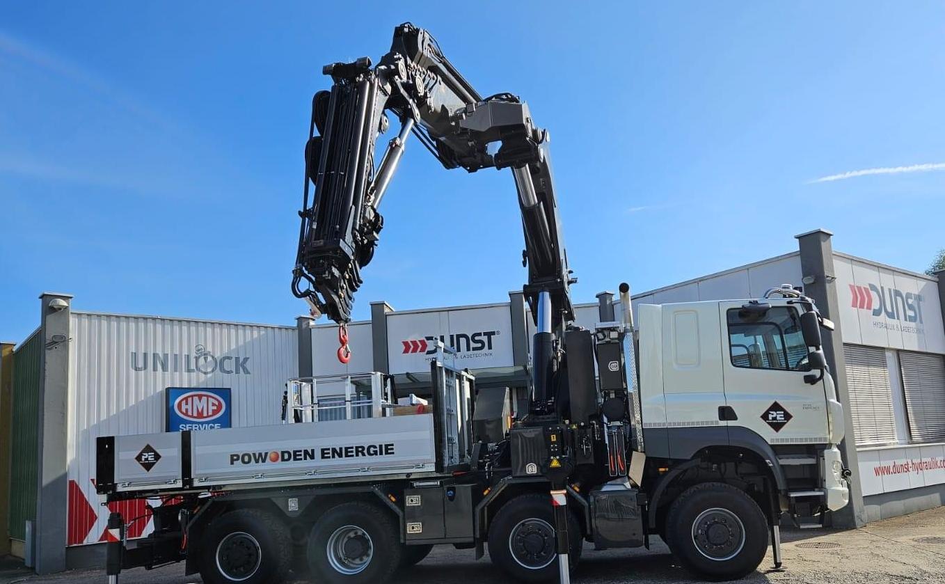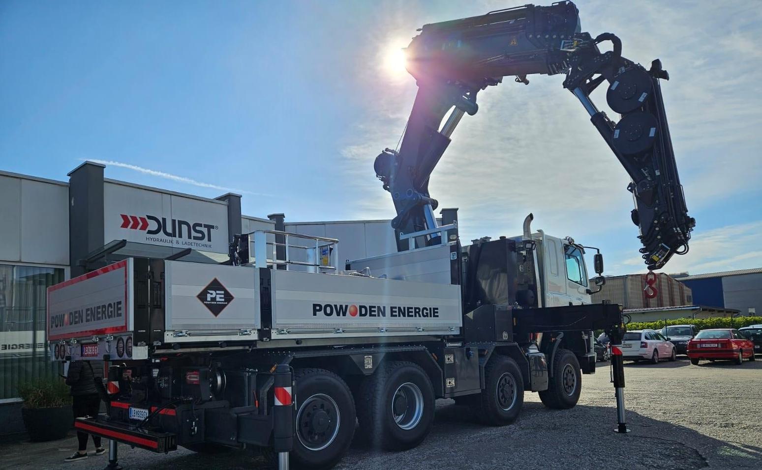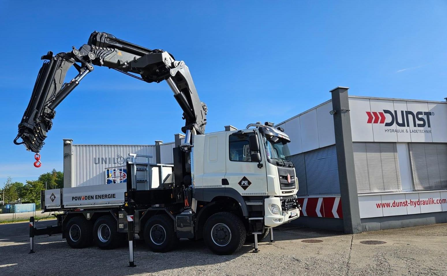 Montage eines HMF 9520-K6+FJ2200-K6 Ladekranes inkl. Kranmontage Front + Wechselpritsche