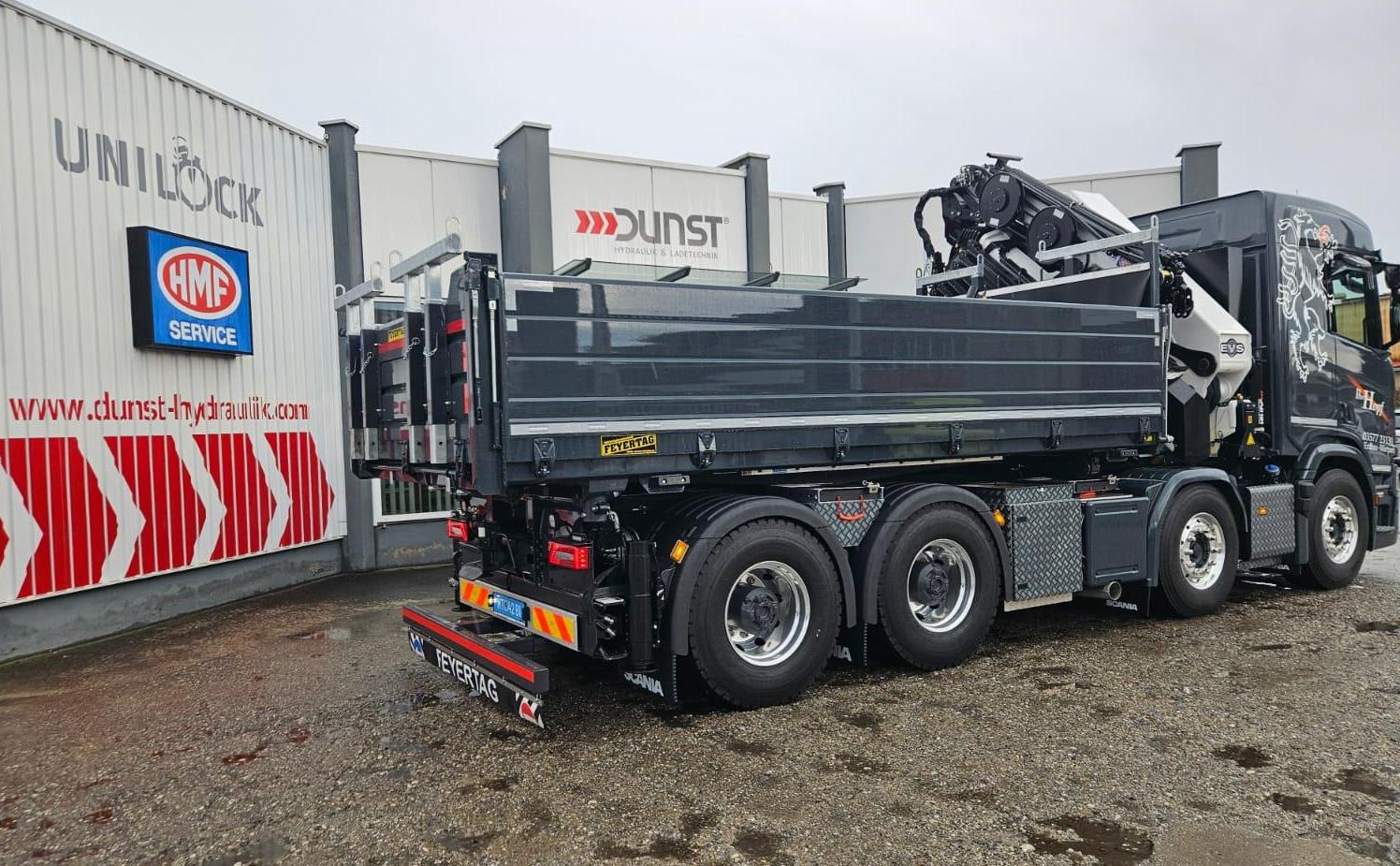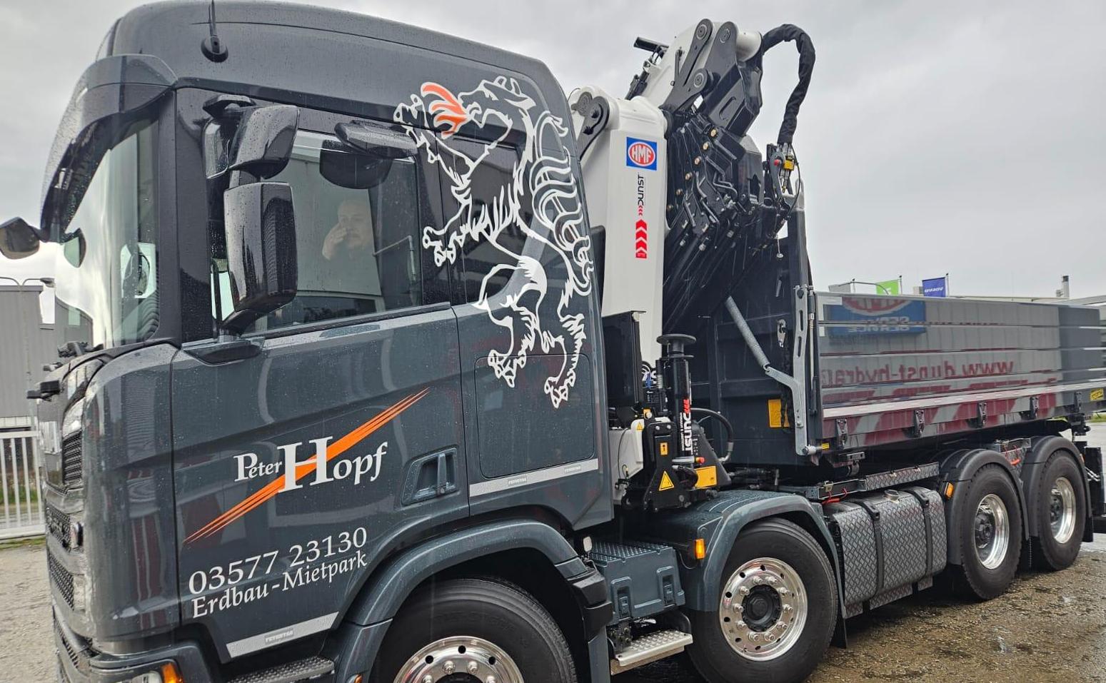 Montage eines HMF 5020-K6 + FJ1000-K4 Ladekranes, front