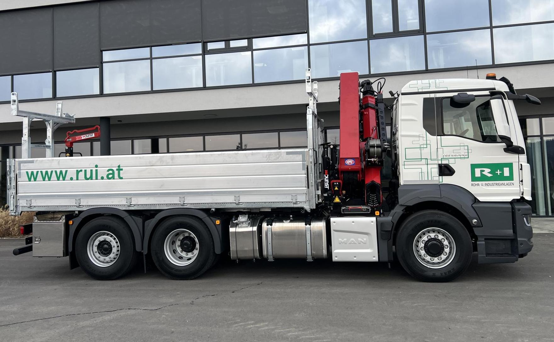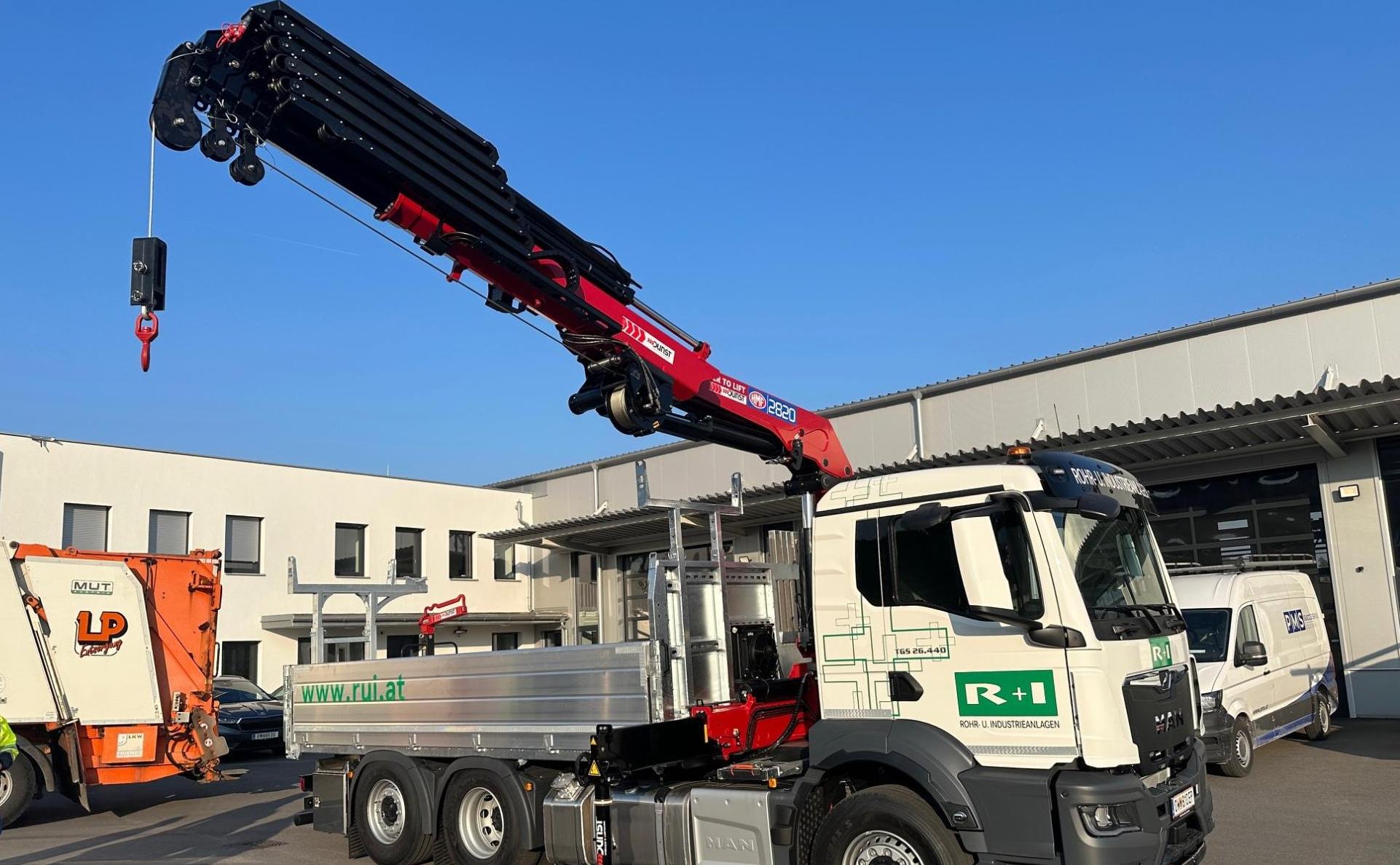 Montage eines HMF 2820-K6 Ladekranes + Ladepritsche inkl. Kranmontage Front