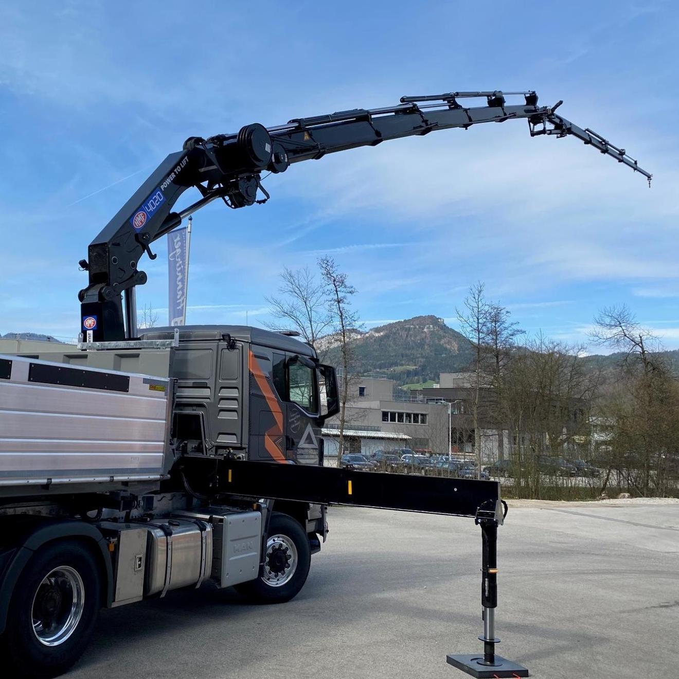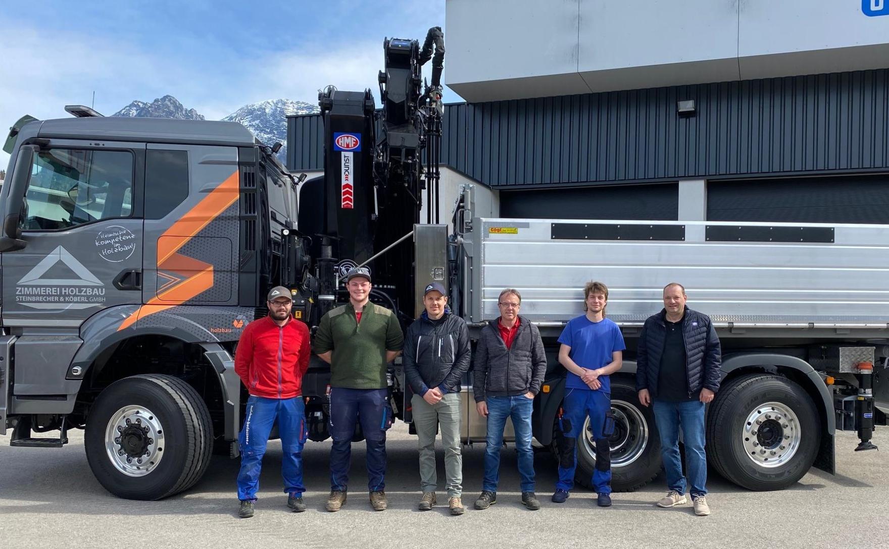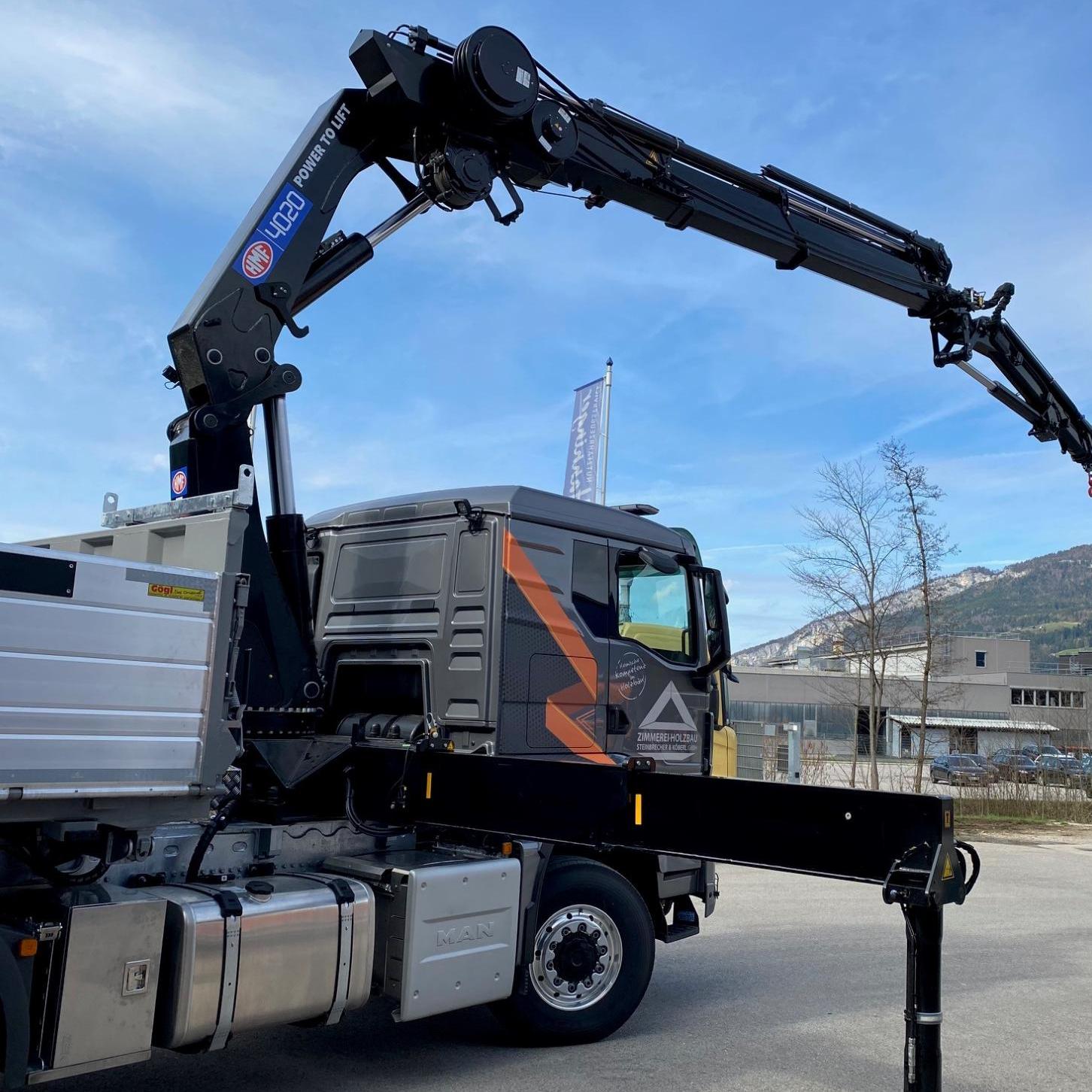 Montage eines HMF 4020-K5 + FJ1000-K5 Ladekranes, front
