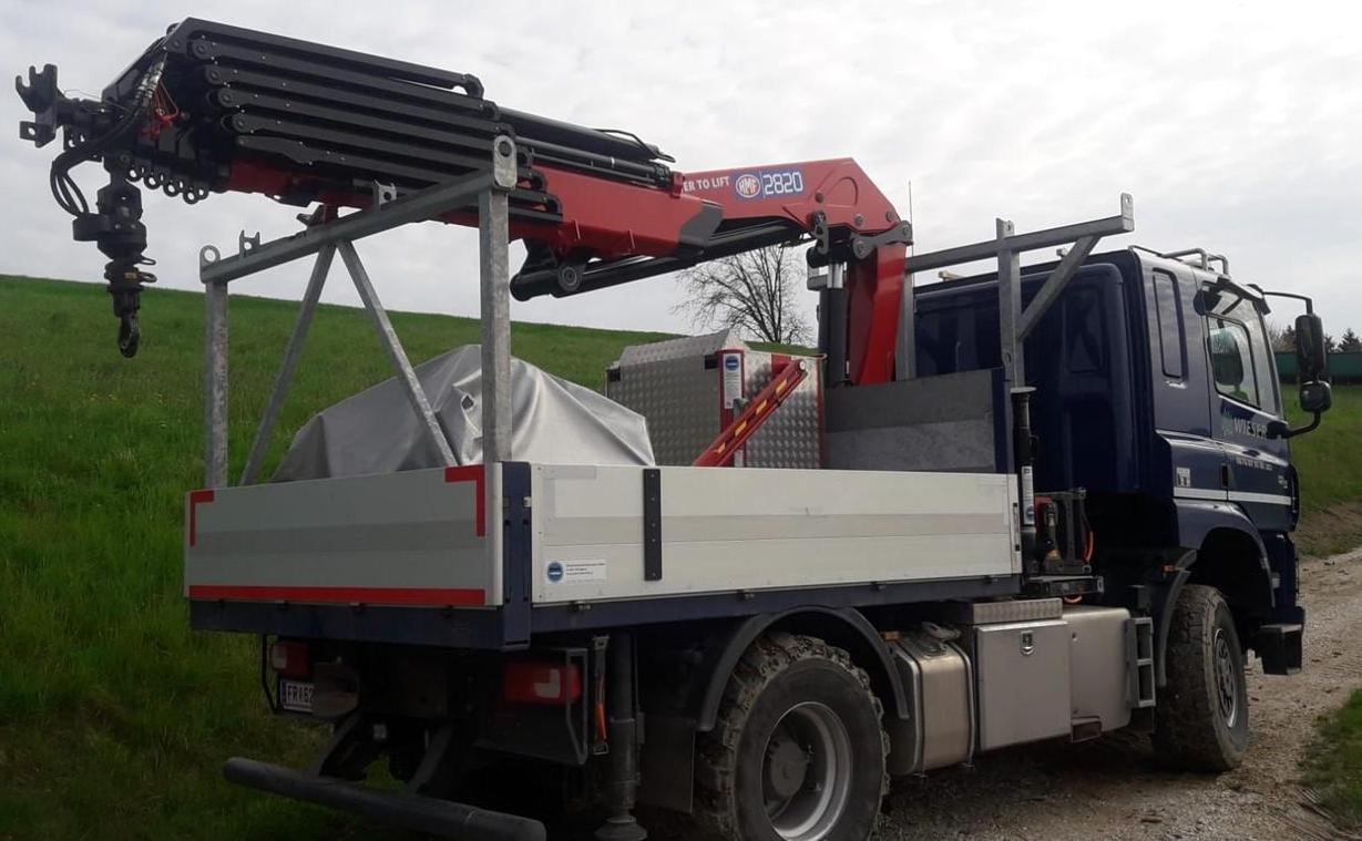 Montage eines HMF 2820-K6 Ladekranes front