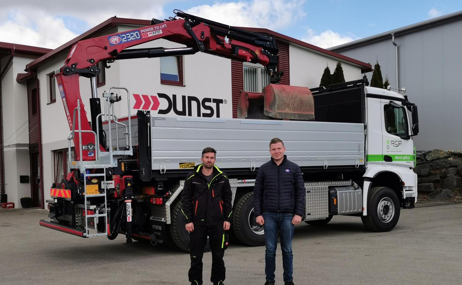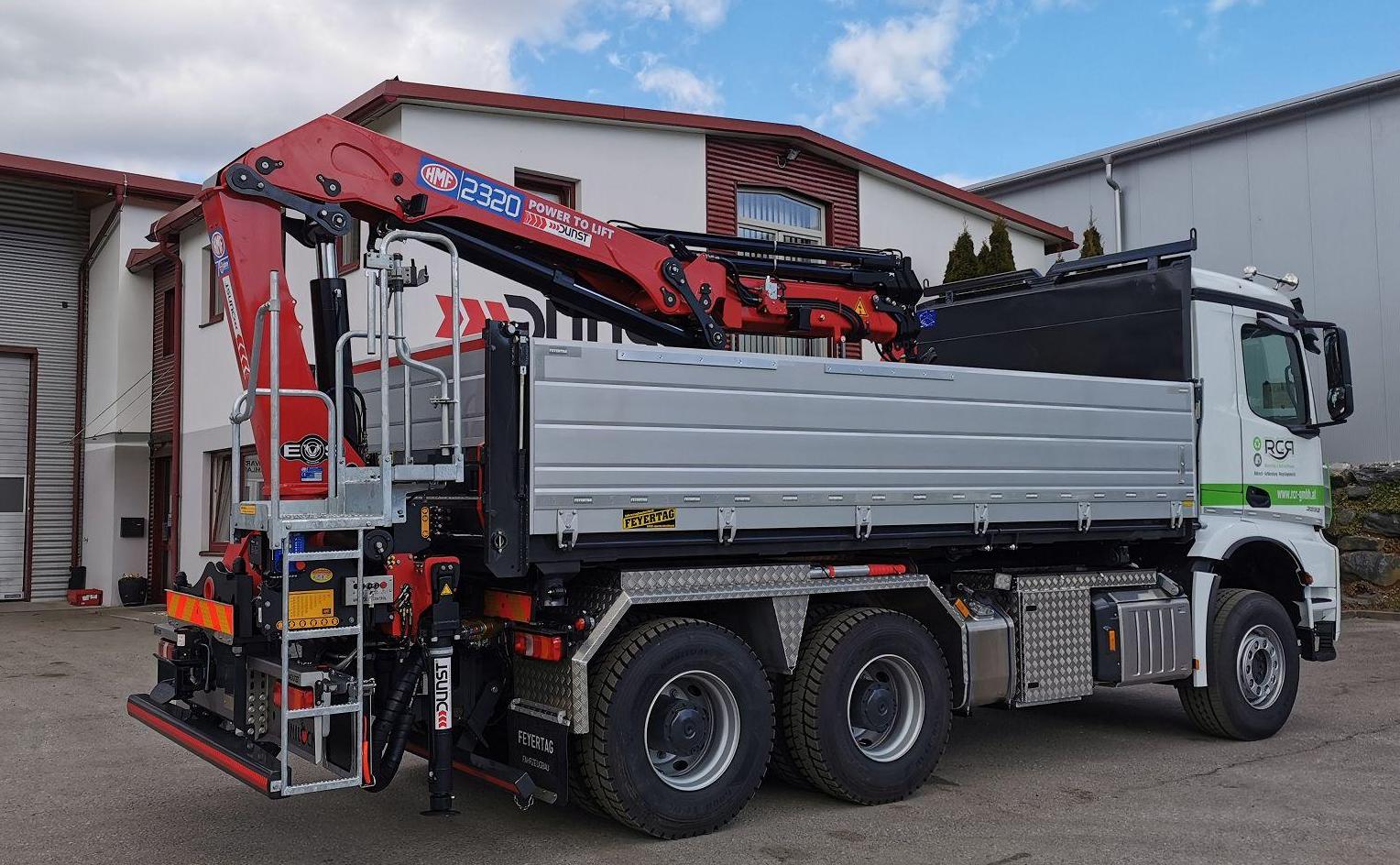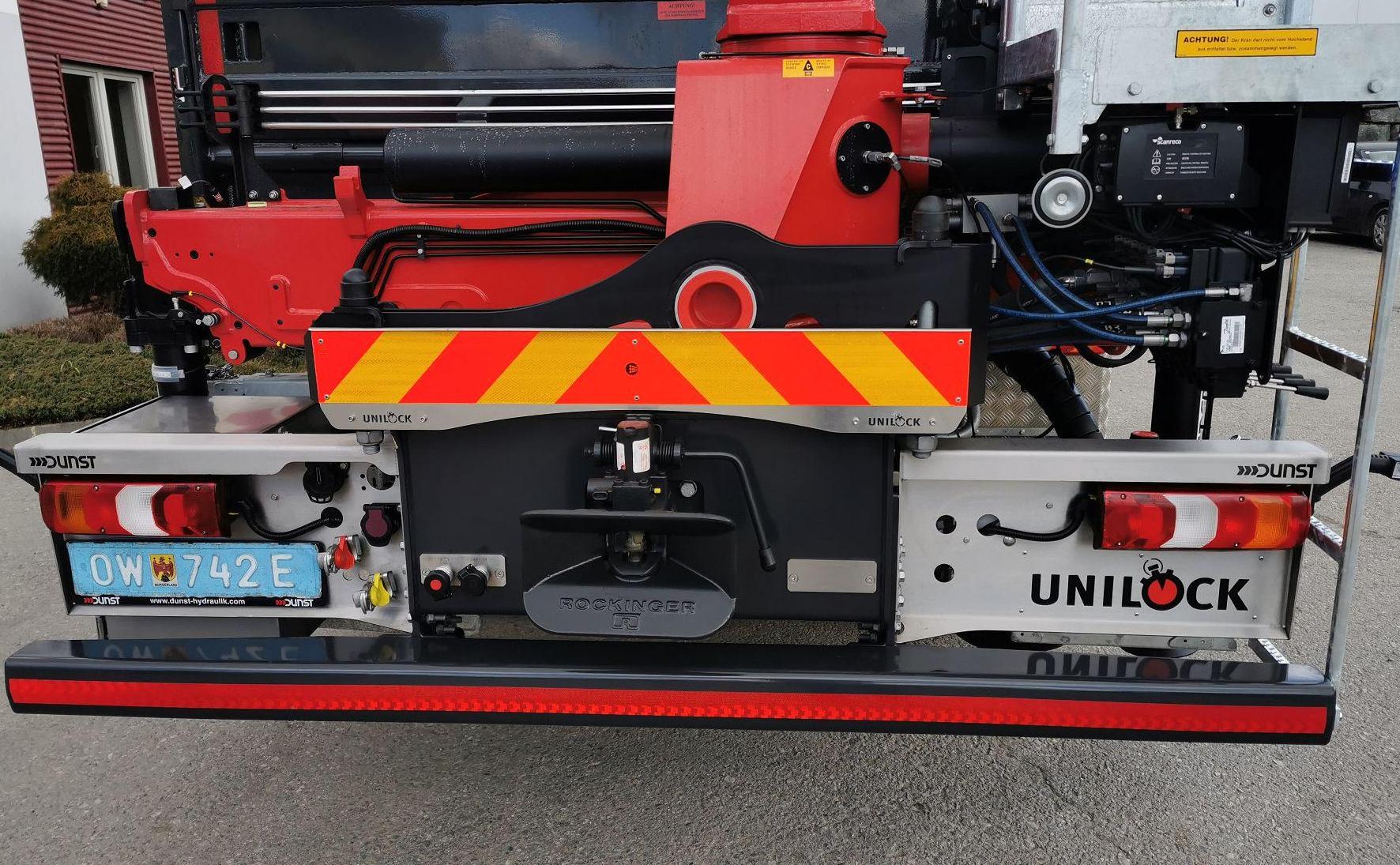 Montage eines HMF 2320-K4 Ladekranes heck abnehmbar auf UNILOCK 250 Kran-Schnellwechselsystem
