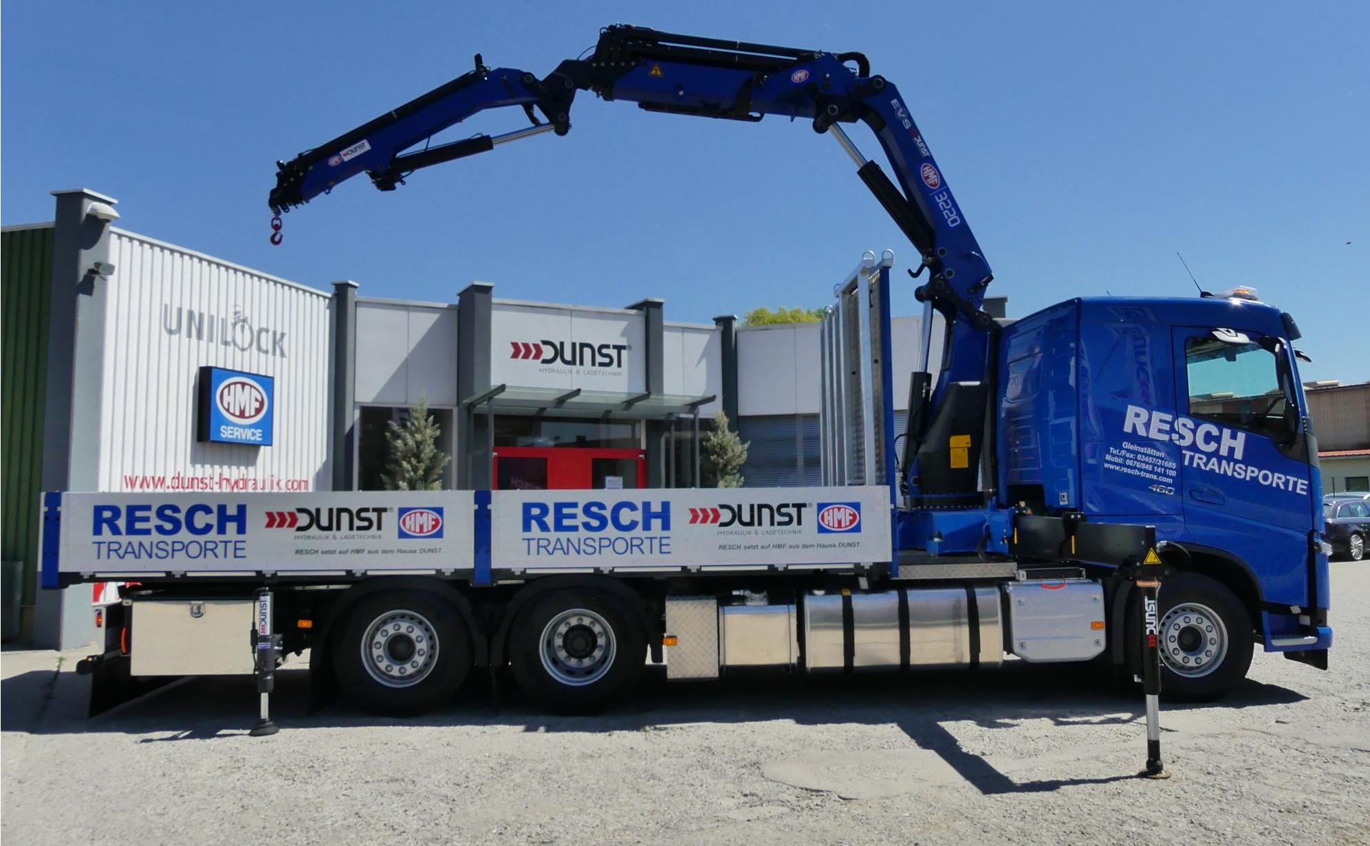 Montage eines HMF 3220-K5 + FJ1000-K4 Ladekranes front inkl. Pritschenaufbau