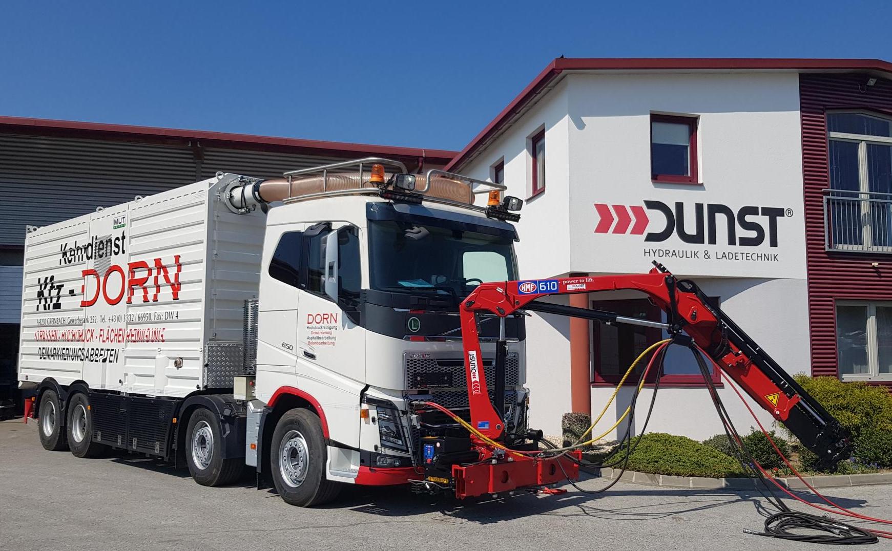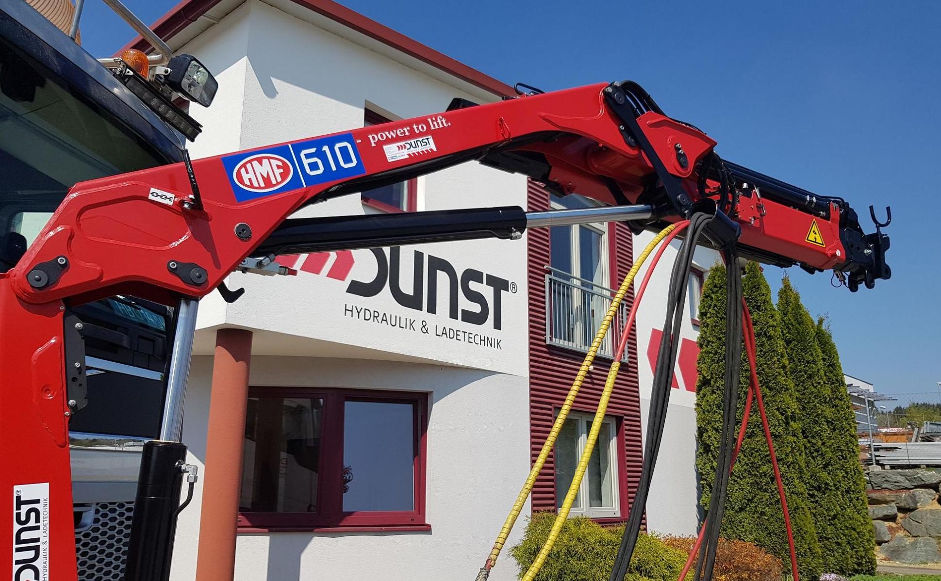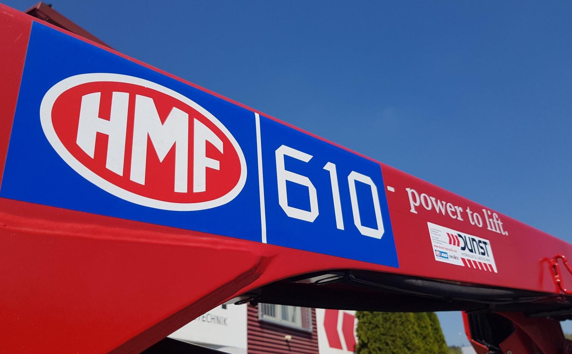 Sondermontage eines HMF 610-K3-RCS Ladekranes front