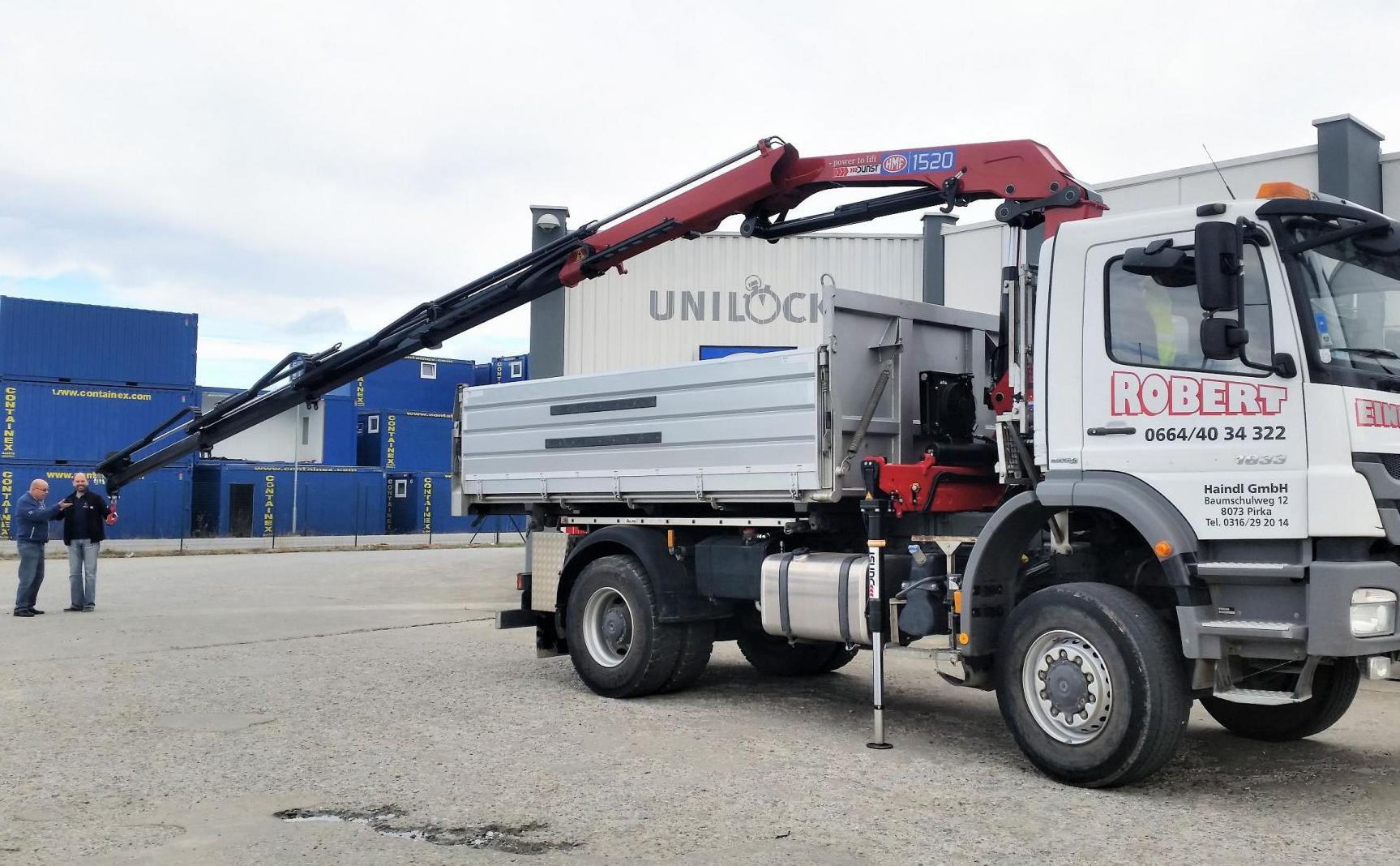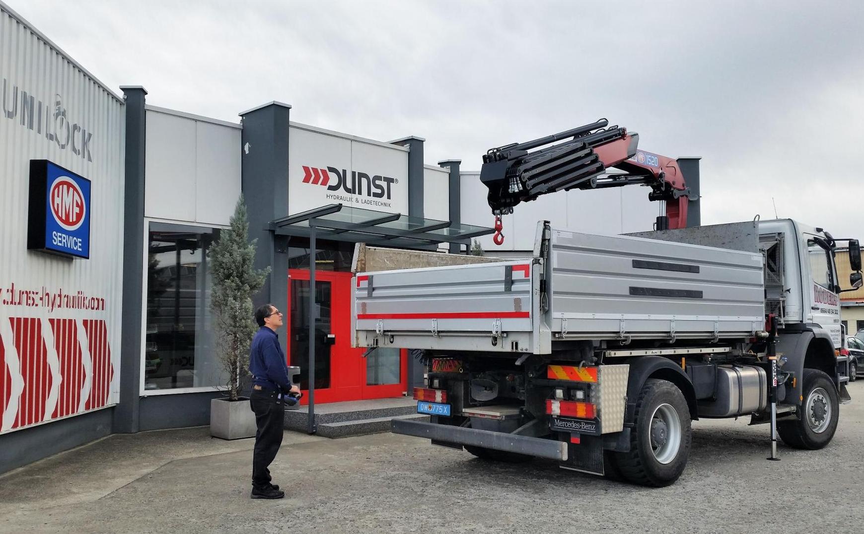Montage eines HMF 1520-K4 Ladekranes front