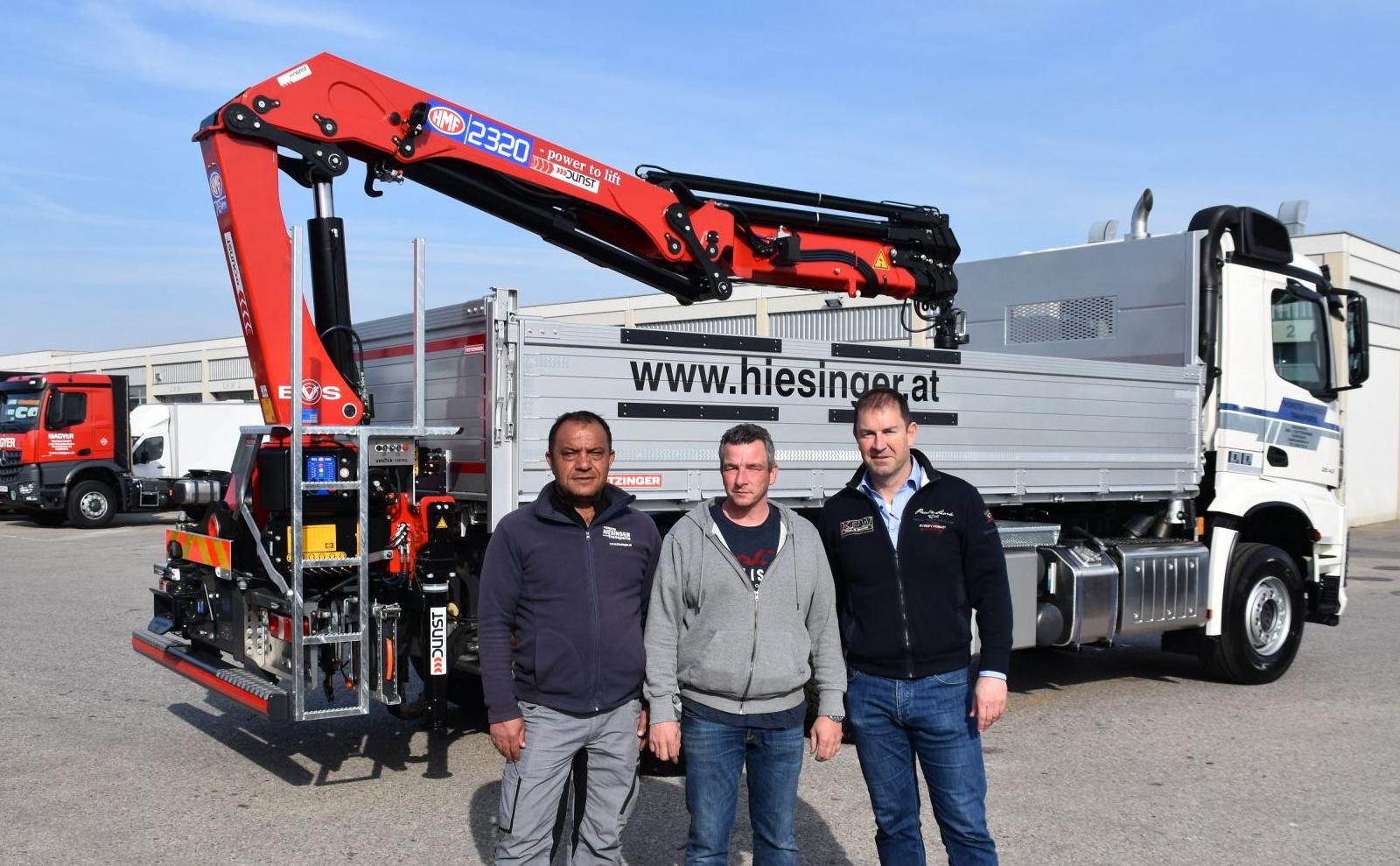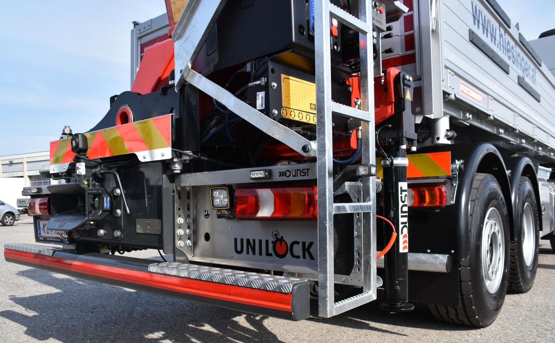 Montage eine HMF 2320-K4 Ladekranes heck abnehmbar auf UNILOCK Kran-Schnellwechselsystem