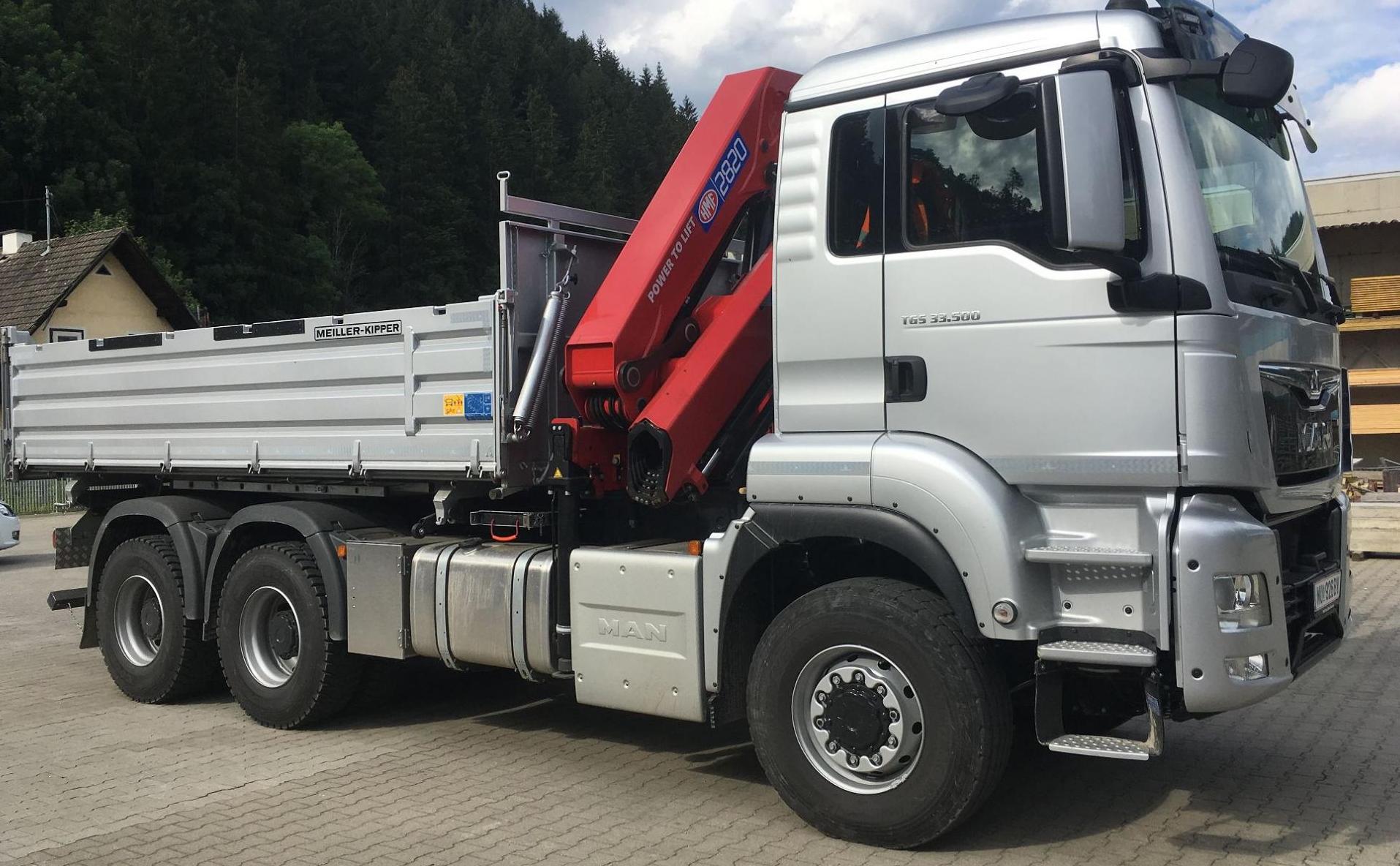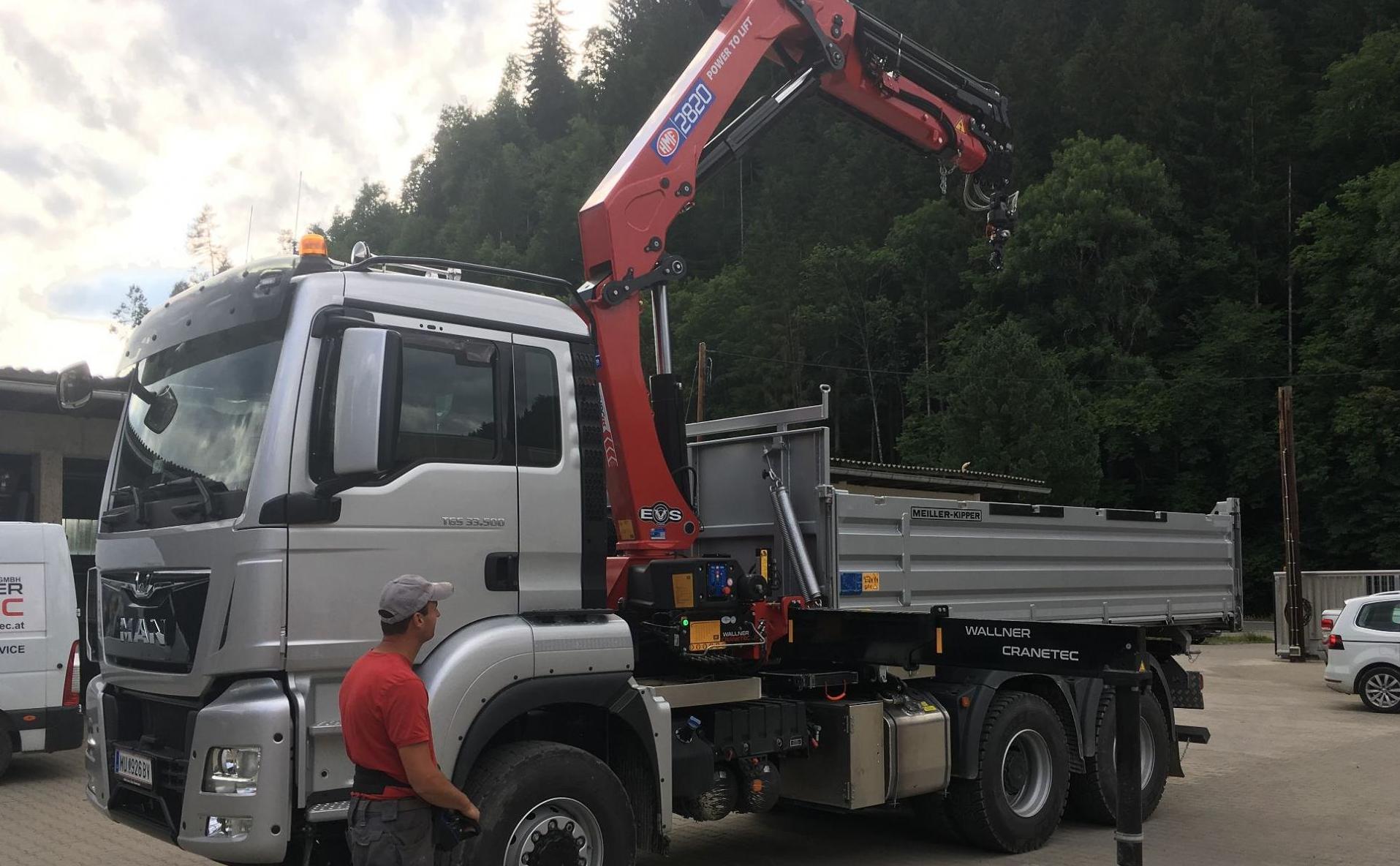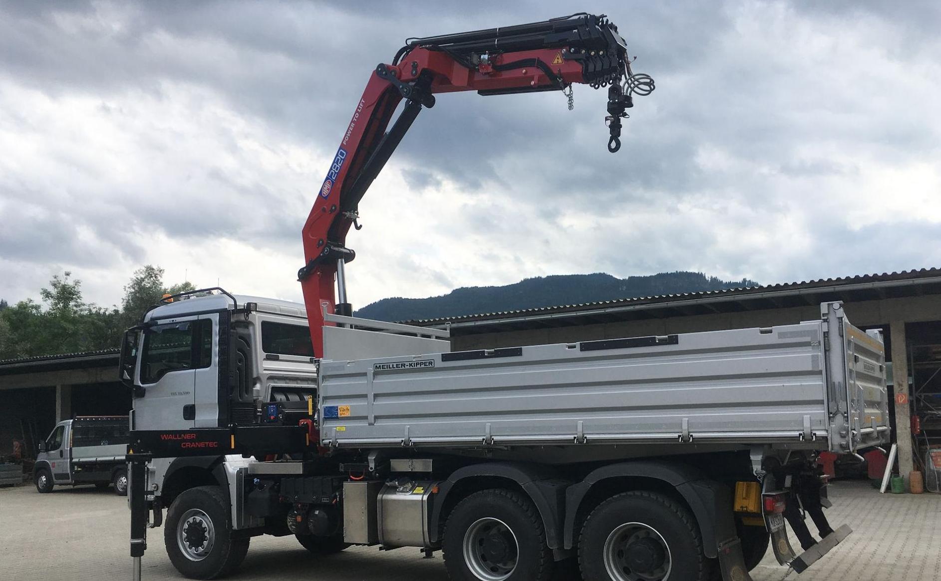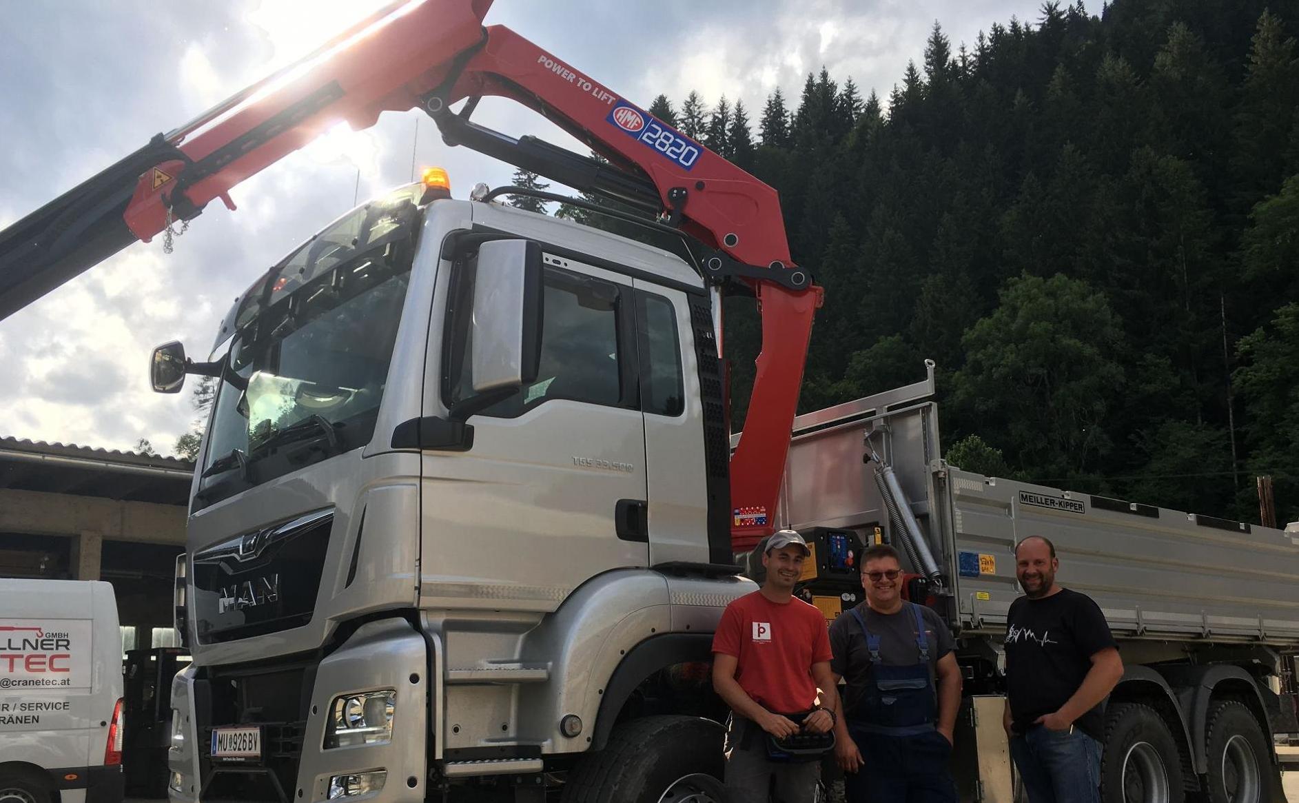 Montage eines HMF 2820-K5 + FJ600-K3 Ladekranes front