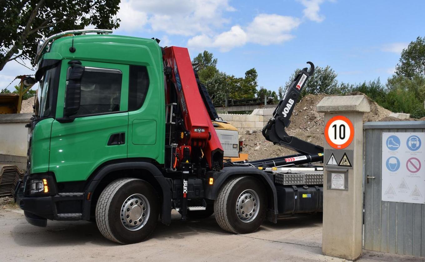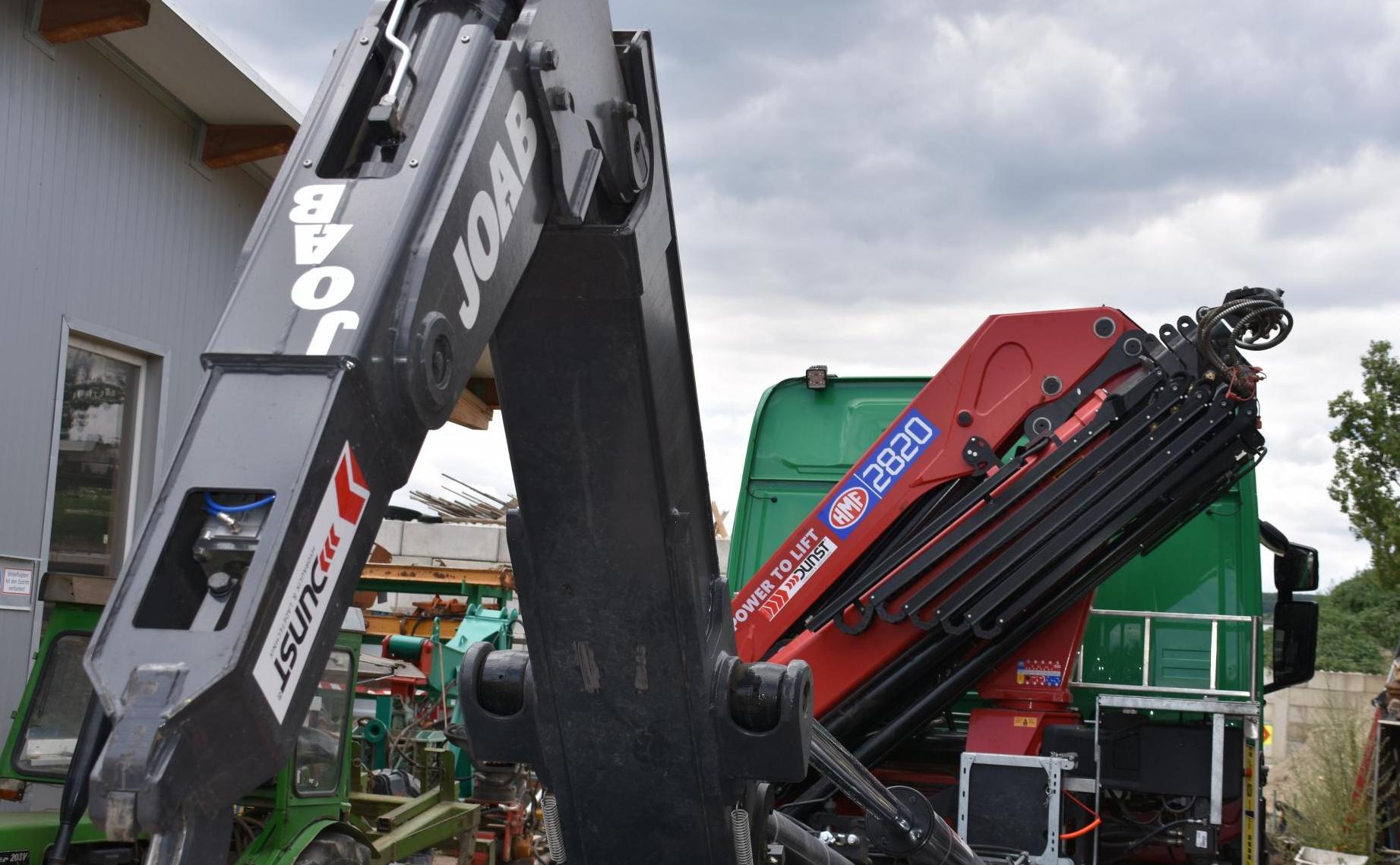 Montage eines HMF 2820-K5 Ladekranes und eines JOAB Abrollkippers L24A