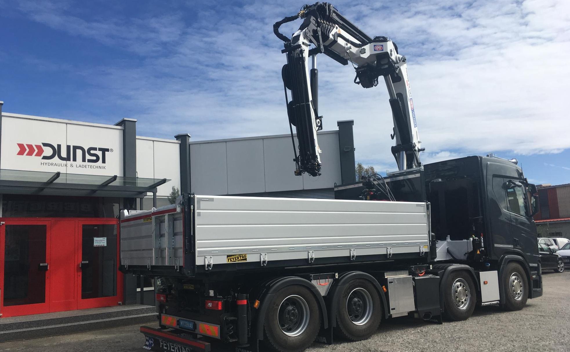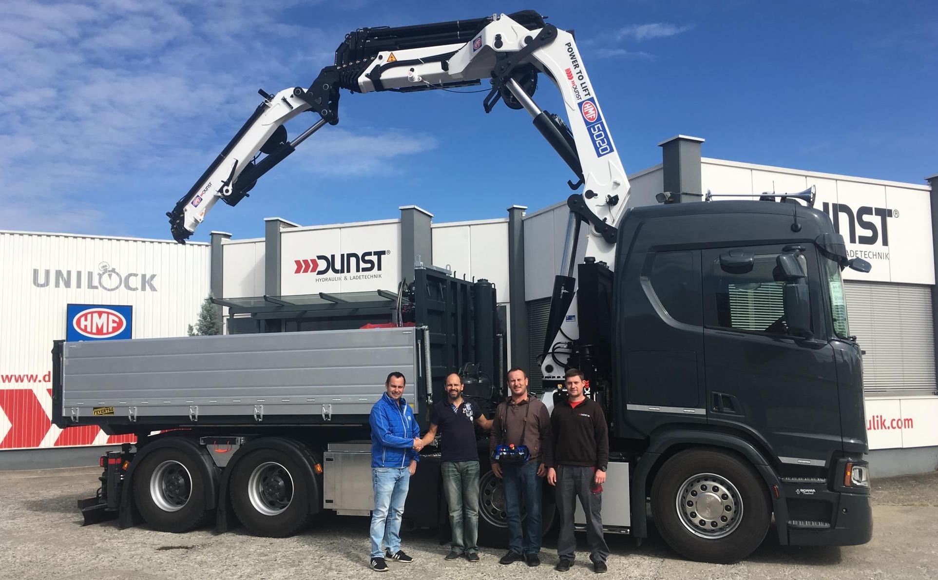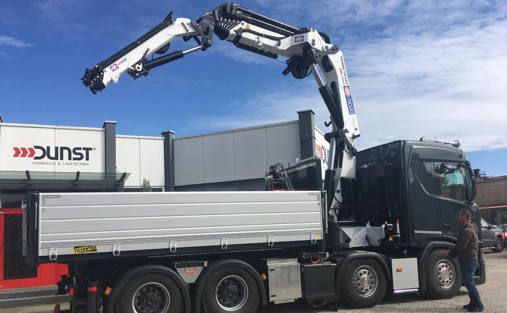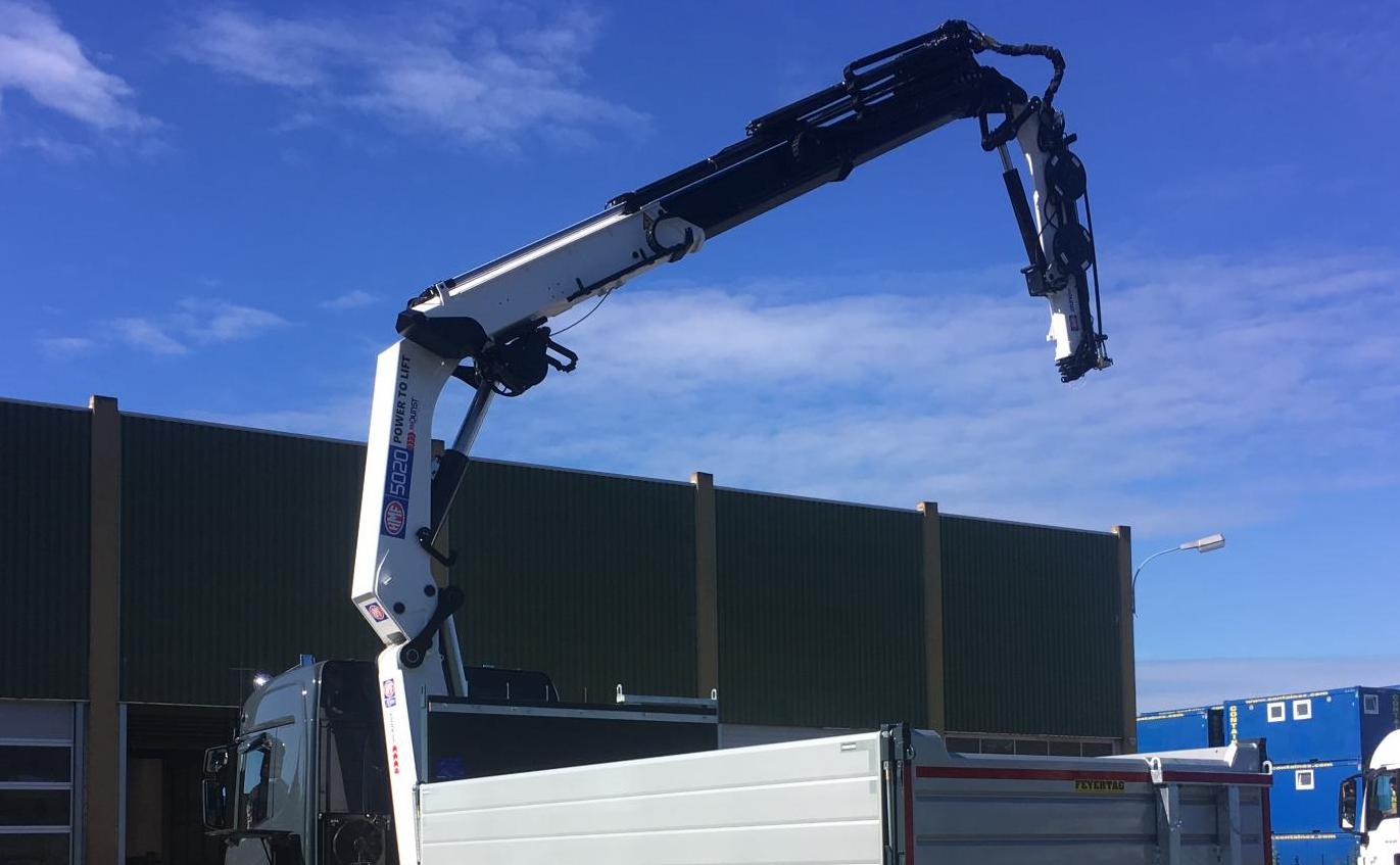 Montage eines HMF 5020-K6 + FJ 1000-K4 Ladekranes front