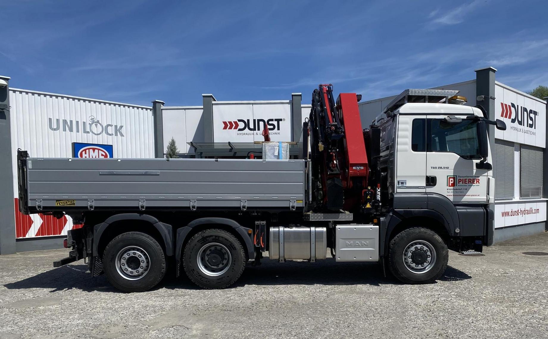 Montage eines HMF 3220-K6 + FJ600-K3 Ladekranes front